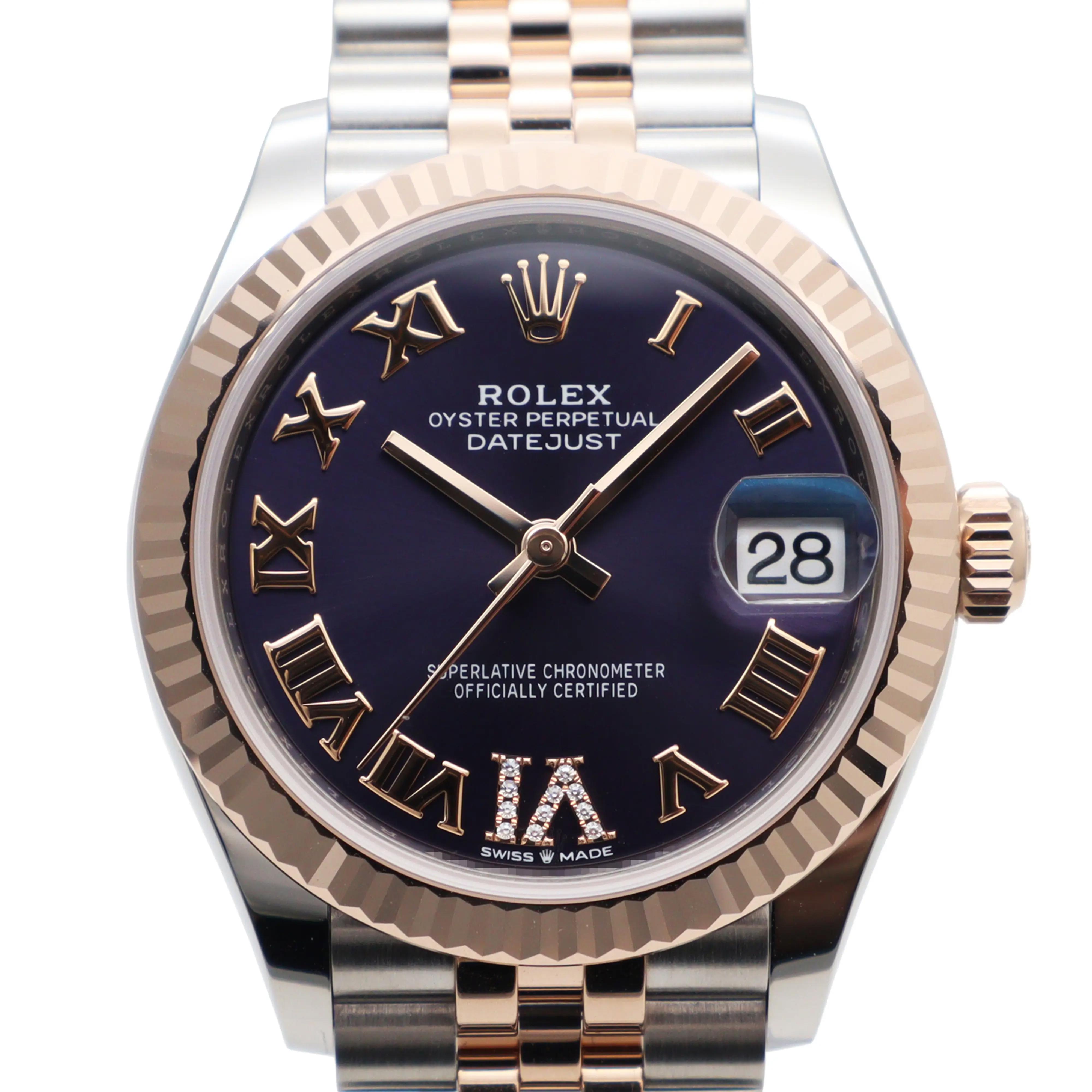 2025 New Rolex 278271 Datejust 31 Purple Roman Dial Yellow Gold Steel Watch