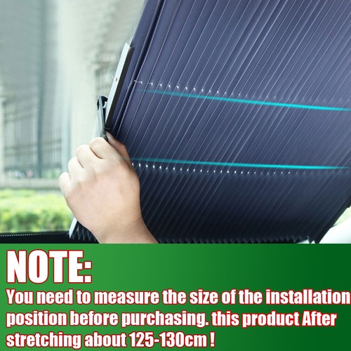 Features: 1.RETRACTABLE WINDSHIELD SUN SHADE----With the self-retracting design, easy to use, just one hand to fix it in 2 seconds, super save time and convenient 2.PREMIUM MATERIAL----Made of high-density polyester sun shade fabric and reflective aluminum membrane, which effectively blocks 99% of the harmful UV rays and up to 85% of the sun's total solar energy to protect your skin from sunburn and allergies and keep the car cool. 3.EASY TO INSTALL----Equipped with sturdy bracket, simple installation, no more fussing with large pieces of cardboard, no more mess when folding it up, free disassembly, space saving 4.PERFECT SIZE----Windshield sunshade fully stretched to cover the entire windshield, shrinking the small size, easy to store, suitable for most of cars 5.Updated powerful suction cup----- 2021 brand new upgraded double vacuum suction cup. After testing, it is more stable and not easy to fall.