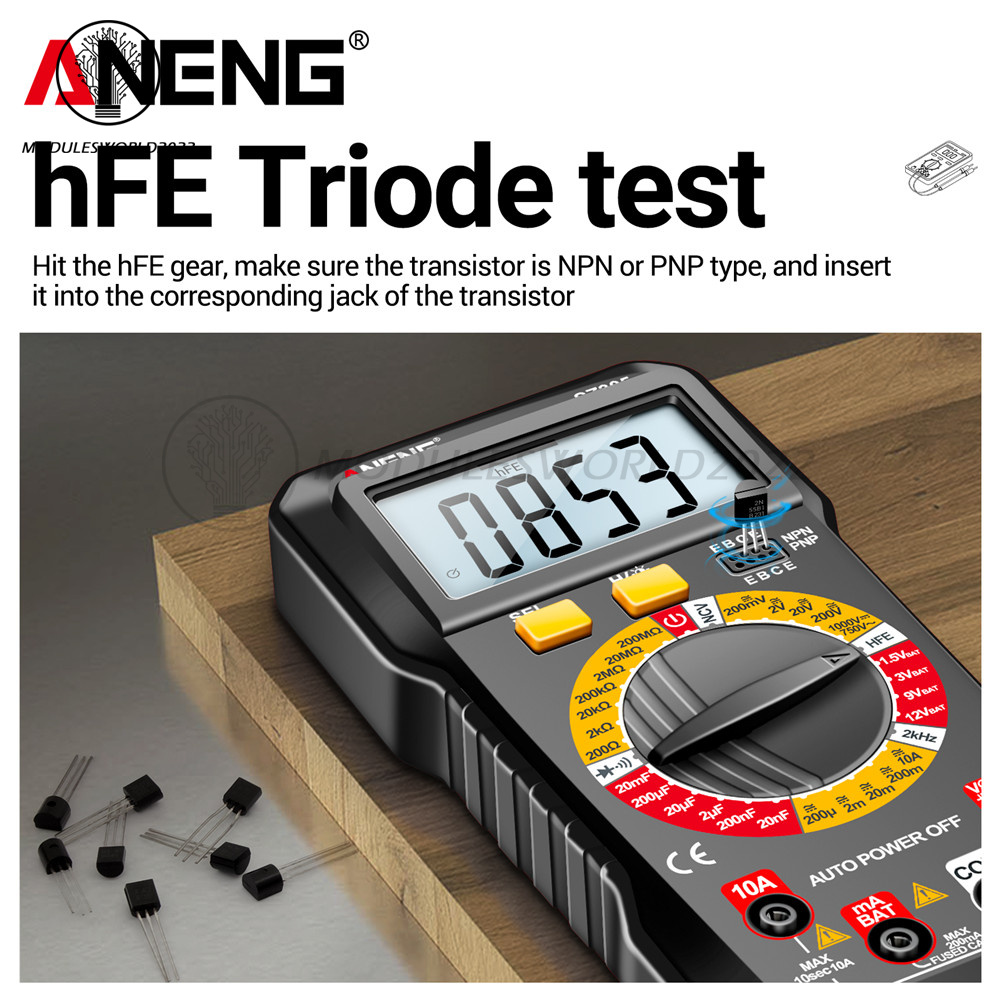 4. hFE triode measurement: the multimeter will be played to hFE gear measurement, to determine whether the transistor is NPN or PNP type, inserted into the transistor corresponding to the jack (SZ305)