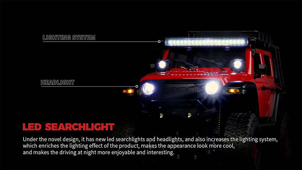 5. Safety Performance: The four wheels with independent suspension can adapt to any common pavement. Full vehicle bearings, alloy gear, bright led headlight, making this off-road crawler car more safe and better climbing experience.