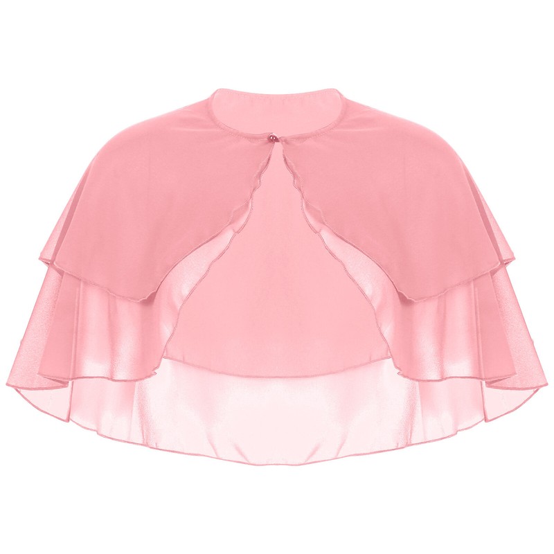 Women elegant pure color chiffon shawl cape ruffle 2-Layer chiffon wraps bolero dress accessory for party wedding.