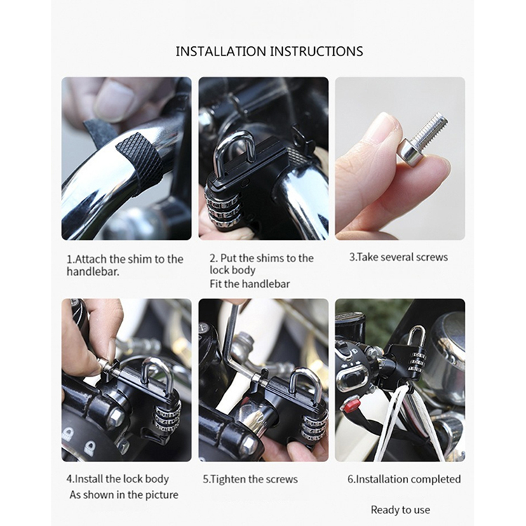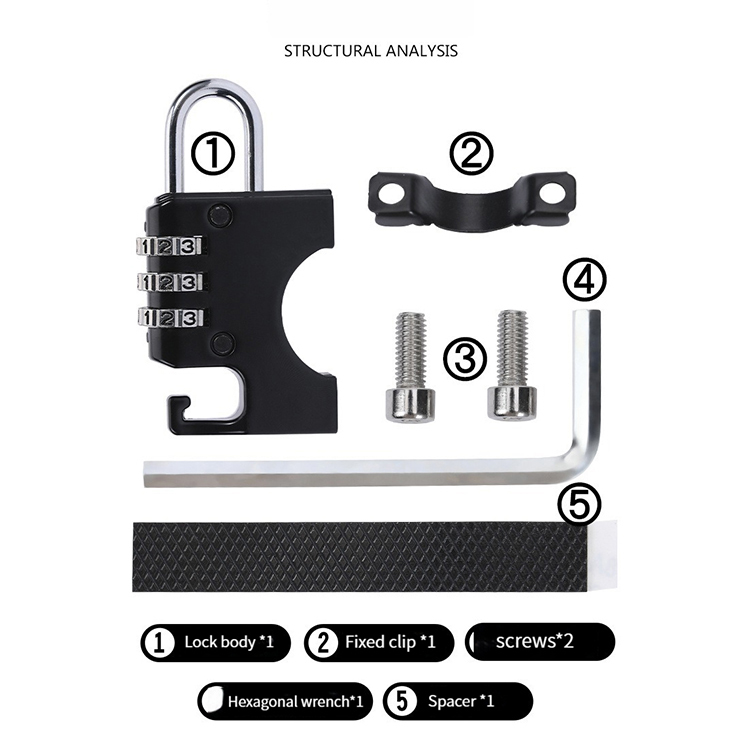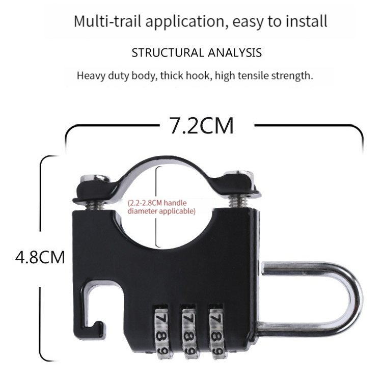 Motorcycle Helmet Lock Bike Anti-theft Combination Lock For 2.2-2.8cm Tube Bar