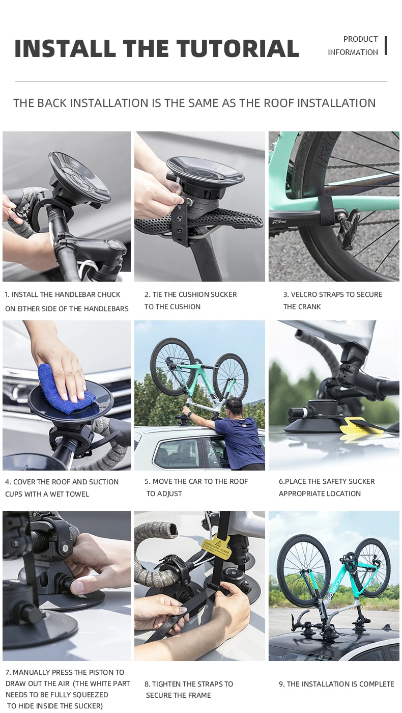 6)Please note that the front roof rack should be installed in a flat place(like the car roof). If installed on the front windshield which the curvature is too large, the strong suction of suction cup will crack the glass.