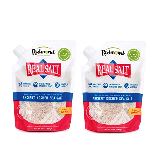 Redmond Real Sea Salt - Natural Unrefined Gluten Free Kosher, 16 Ounce Pouch (2 Pack)