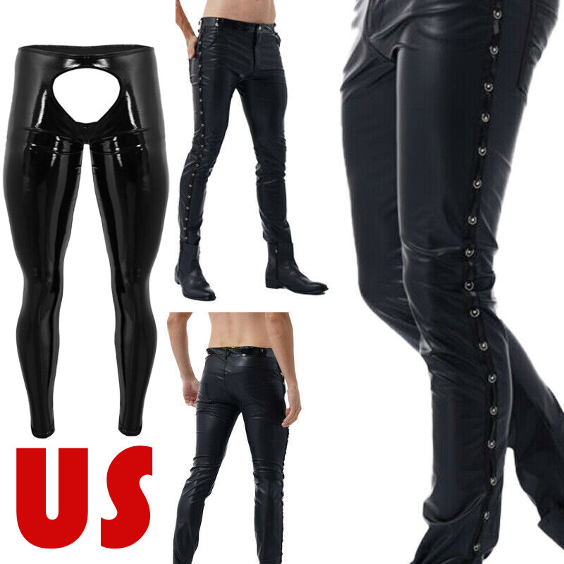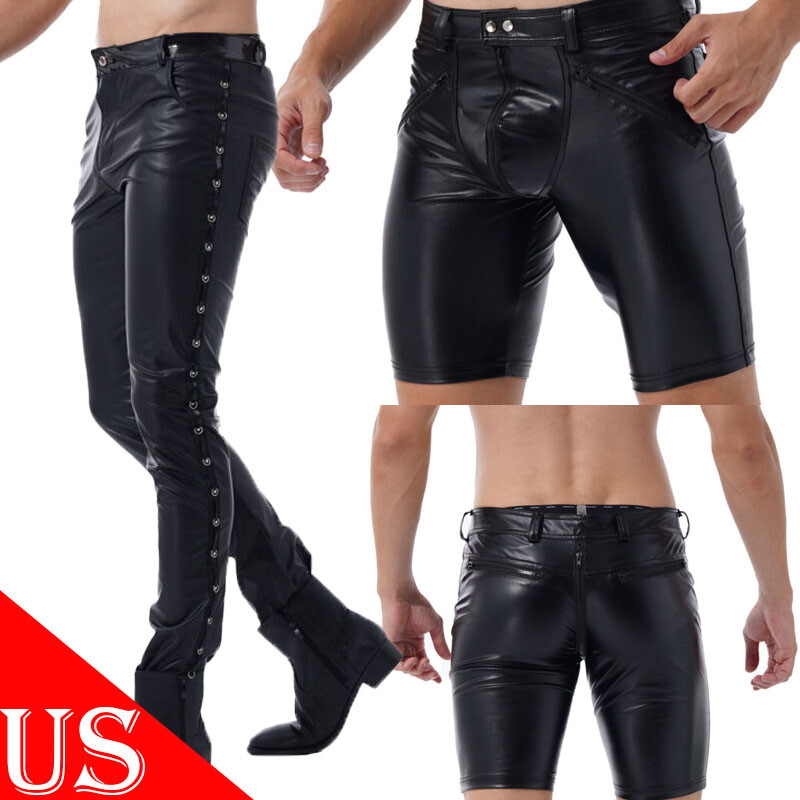 Men Letter Print Elastic Waistband Briefs Underwear Low Waist Bulge Pouch Faux Leather Underpants.