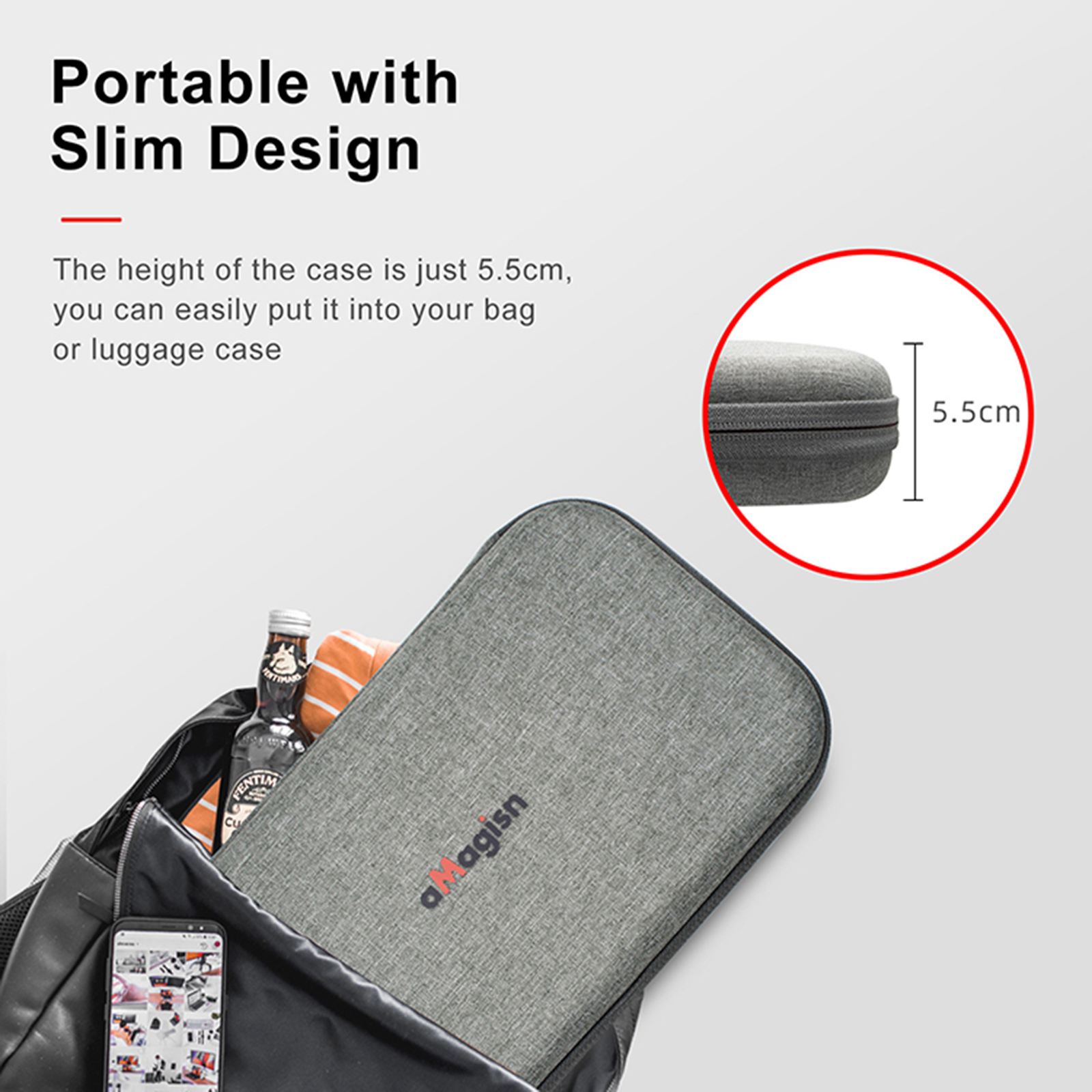 l Portable with slim design, the height of the case is 5.5cm, can be easily put into your bag or luggage case