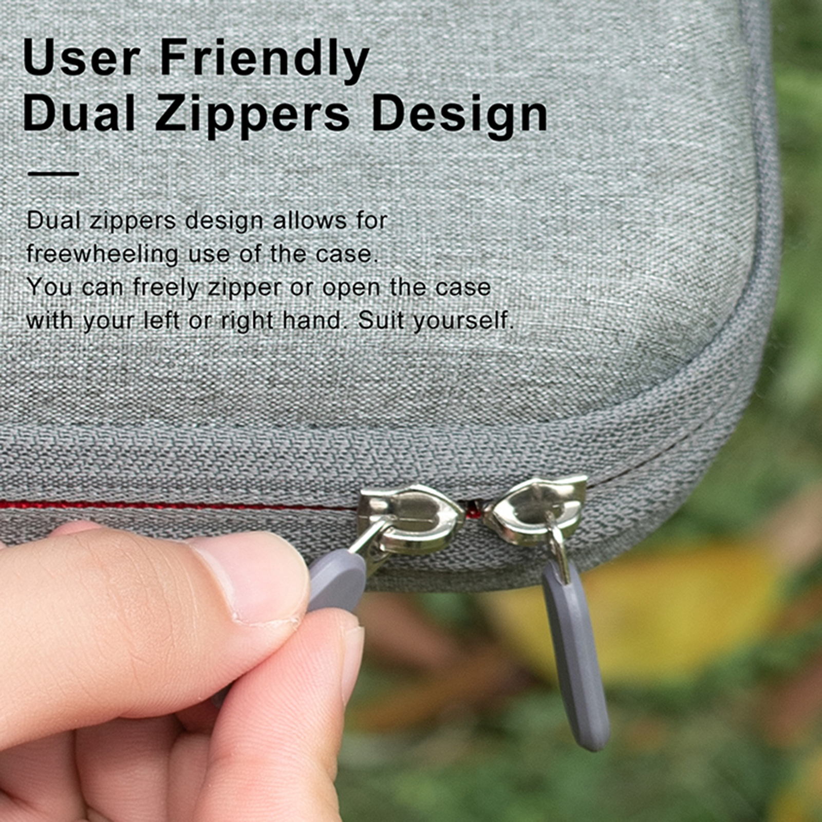 l Dual zippers design, you can freely zipper or open the case with your left or right hand