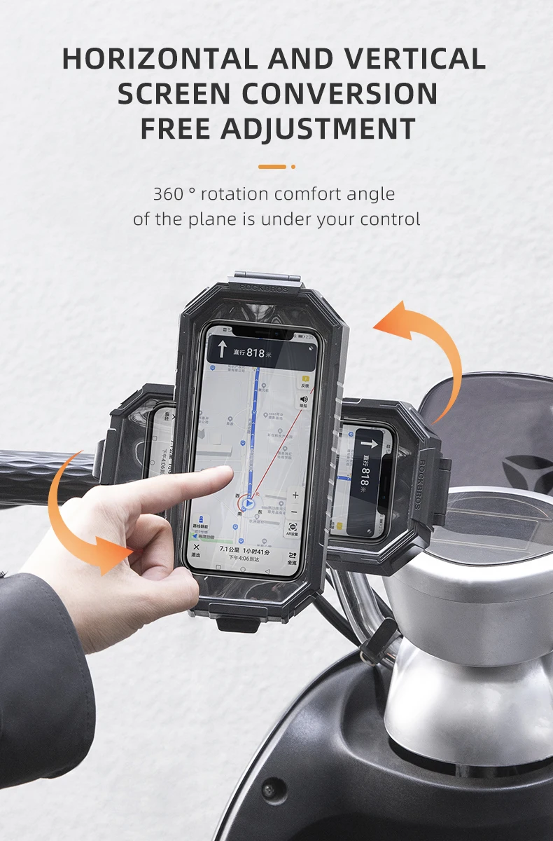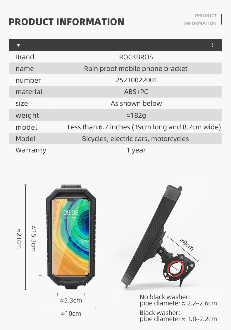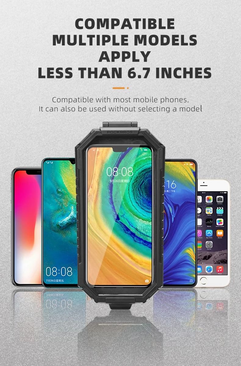 Brand:ROCKBROS Name:Rain proof mobile phone bracket Number:25210022001 Material:ABS+PC weight:182g Model:Less than 6.7 inches (19cm long and 8.7cm wide) Model:Bicycles, electric cars, motorcycles