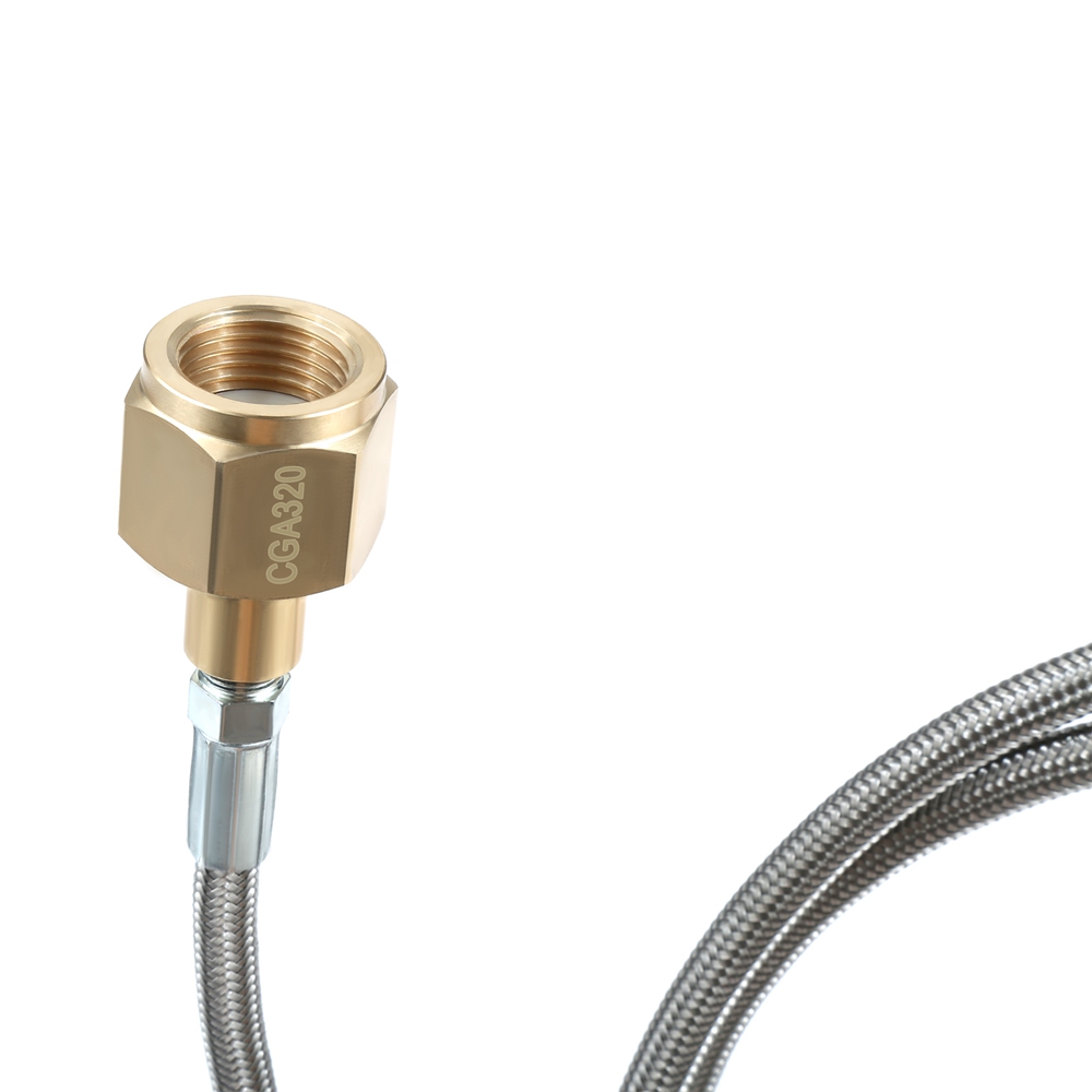 1.The CO2 adapter hose is made of stainless steel & solid brass, working pressure 1500 psi.High-pressure resistance, high-temperature resistance, anti-rust, anti-corrosion, anti-aging.