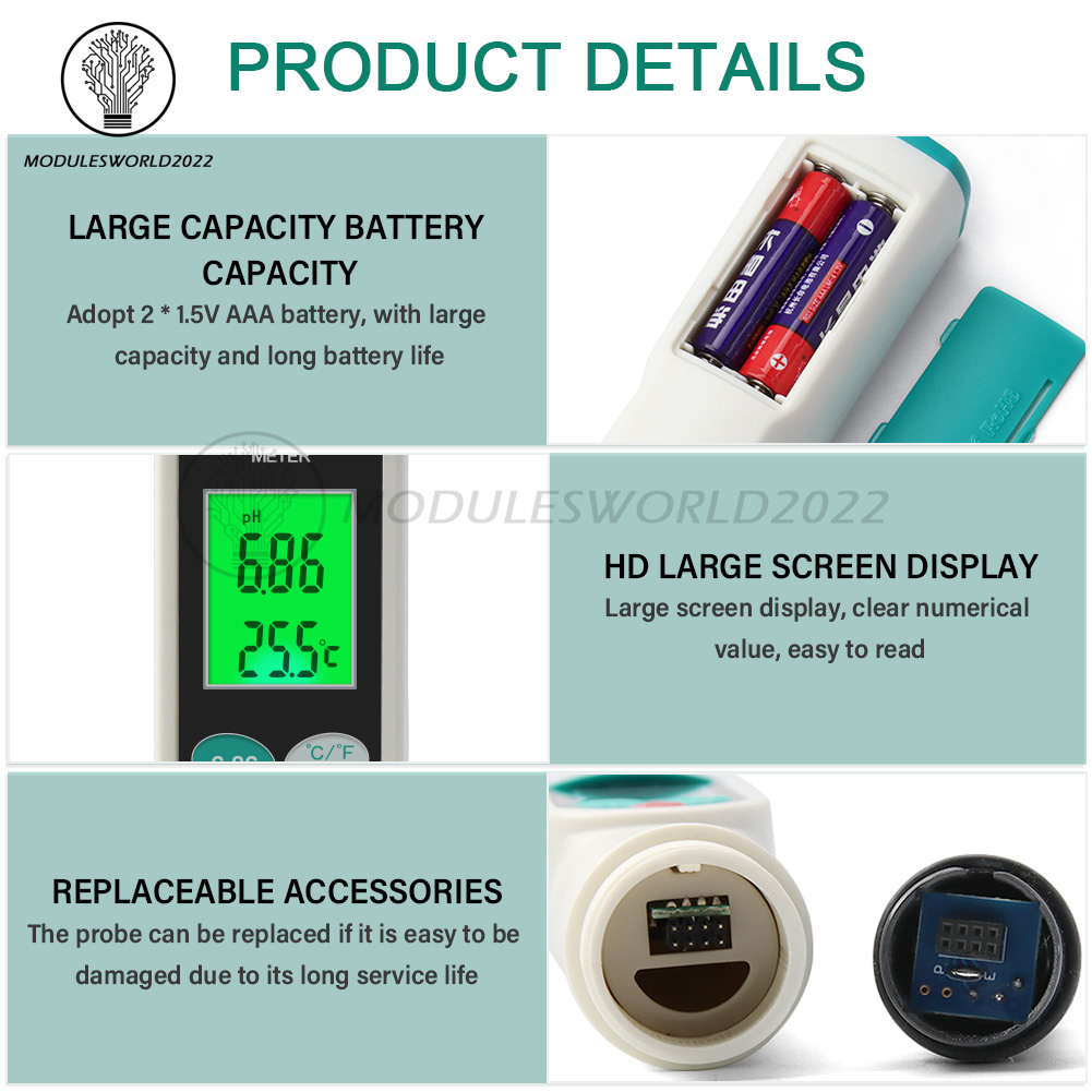 Range: pH: 0.00~14.00PH, Temp: 0~50 ℃