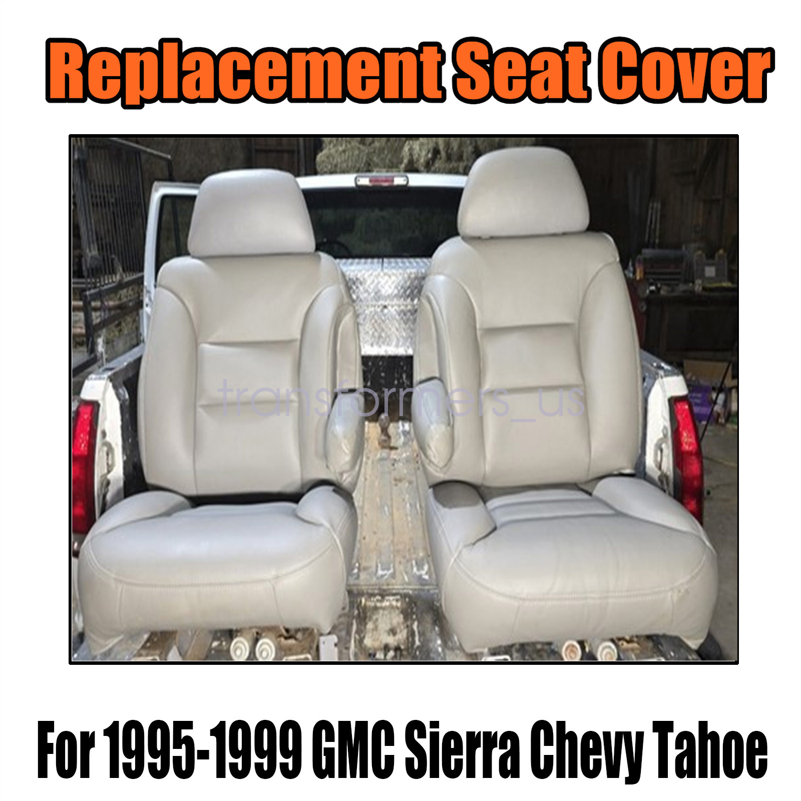 For 1995 1996 1997 1998 1999 Chevrolet/GMC Tahoe, Suburban, Silverado & Sierra, Yukon Driver Passenger Bottom Top Lean Back Replacement Leather Seat Cover Pewter Gray Color Code132