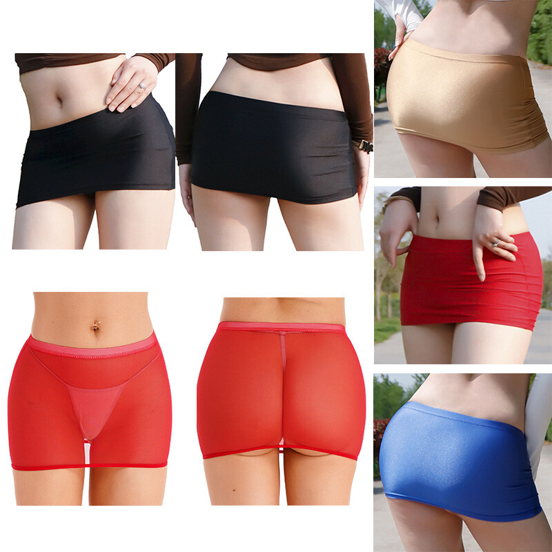 Womens Low Rise Miniskirt Solid Color Elastic Waistband Skirt.