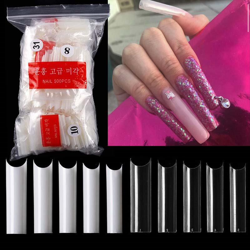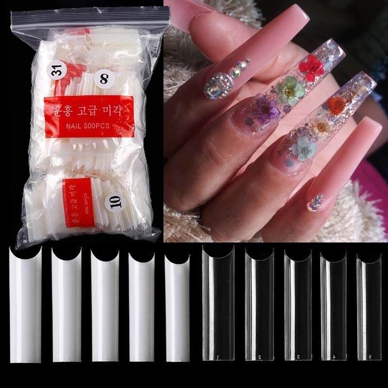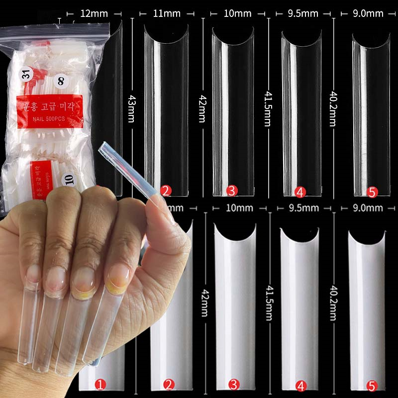 500Pcs XXL Extra Long C Curve Nail Tips Clear Fake Straight Square Shape Nails