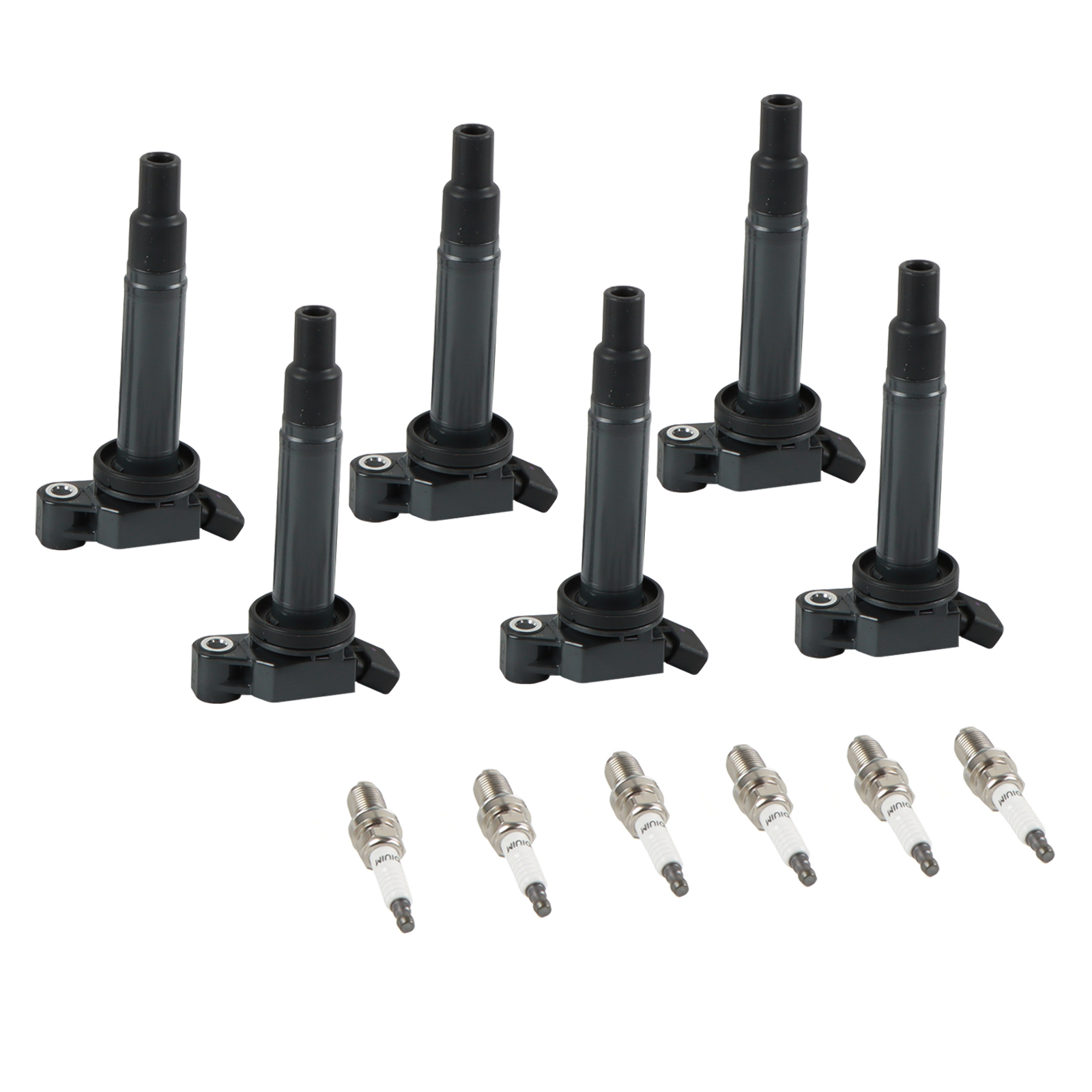 6pcs Ignition Coils & 6pcs Iridium Spark Plugs for Toyota Camry Sienna UF267 Specification Condition: Brand New Connector: 4 Pins Voltage: 12V Terminal Type: Blade Spark Plug Material: Iridium One year Warranty Thread Diameter:14 Thread Length:19 Features Built to strict quality control standards. Ready to use, Direct Replacement. 100% Compatible with OEM Parts, meets Original Equipment Manufacturer (OEM) Standards 100% pure copper windings in bobbins improve durability ,thermoplastic housing withstands heat stress for enhanced durability Silicone rubber boot withstands extreme heat to ensure superior insulation Spark Plugs are using High-Performance Iridium metal, Much better than Nickel and Platinum It's suggested that ignition coil and spark plug be replaced in a sychronized manner to lower the likelihood of common ignition system dysfunctions such as failure to start,engine vibration, misfiring, inadequate power, spark plug fouling and poor fuel economy Interchange Part Number: Ignition Coils: UF267, UF-267, 610-58572, 9091902234, 9008019016, COP265, 6731301, 5C1193, C1175, 1788315, 5057, E507C, E789, 52-1597 Spark Plugs: 99917022790, AGSP33C, BP0318110, BP0418110, BP1218110, EBC11480, EBC8143, F28518110, F28618110, JE4318110, JE4418110, KJ1118110, KJ1218110, KJ1718110, KJ1818110, M04671057, M05269899, MD313443, MD321878, MD322771, MD378582, MN119487, MN163236, MN163807, MR984646, MR984943, MS851336, MS851502, PK20TT, S2000RC9YC, SP000RC9YC, SP00QC9MC4, SP0RC8PYP4, SPZFR6F11G, ZAP121200, ZM0218110, ZVP121086C. FIT FOR: 1999-2003 Lexus ES300 3.0L V6 1999-2003 Lexus RX300 3.0L V6 2001-2006 Toyota Sienna 3.3L V6 2001-2010 Toyota Highlander 3.3L V6 2000-2004 Toyota Avalon 3.0L V6 2002-2006 Toyota Camry 3.0L V6 2004-2006 Lexus ES330 3.3L V6 2004-2006 Lexus RX330 3.3L V6 2004-2008 Toyota Solara 3.3L V6 2006-2008 Lexus RX400h 3.3L V6 Package include: 6PCS Ignition Coils +6PCS Spark Plugs Attention: How to Change Ignition Coils and Spark Plugs? 1.Disconnect the old ignition coil and spark plugs 2.Disconnect your battery’s negative terminal 3.Locate the ignition coil and spark plugs to be replaced. 4.Release the clip on the plug running into the side of coil. 5.Use a wrench to unscrew the bolts holding the original coil in place 6.Extract original ignition coil and spark plugs from the engine bay 7.Swapping in the new ignition coil and spark plugs 8.Prior to installation, compare the new coil to the old one 9.Orient the new coil in the same direction 10.Insert the bolts to hold the coil in place 11.Activate the New ignition coil and spark plugs 12.Connect the plug into the side coil 13.Plug in ignition cables according to the order written on them. 14.Reconnect the battery 15.Start the vehicle to test the new ignition coil and spark plugs PLEASE NOTE: In preparation for the replacement, the vehicle should be turned off and cooled for a certain period of time before starting the replacement. Pay attention to the cleanliness of the entire operation, must wipe the ignition coil around the dust and oil, if into the combustion chamber, will have serious adverse effects, try to wear gloves to operate.