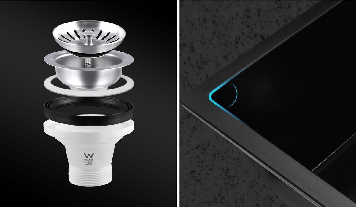 Constructed of a granite composition of 80% granite and 20% natural resin in a smooth finish, the sink is simply rock solid. With totally desirables attributes such as enhanced wear, scratch and corrosion resistance, oil-proof, anti-bacterial, anti-discolouring and food-grade safe. Plus, the material also makes the sink easy to clean with a beautiful lotus leaf effect presenting itself after the cleaning. Better still, the deep bowl design and R15 corners provide plenty of space to do your dishes or prepare your cooking ingredients with minimum fuss. In fact, the sink comes with built-in thickened sound-deadening pads for better sound absorption that equals to whispers and library conversational levels. Something that we cannot say the same for our competition.