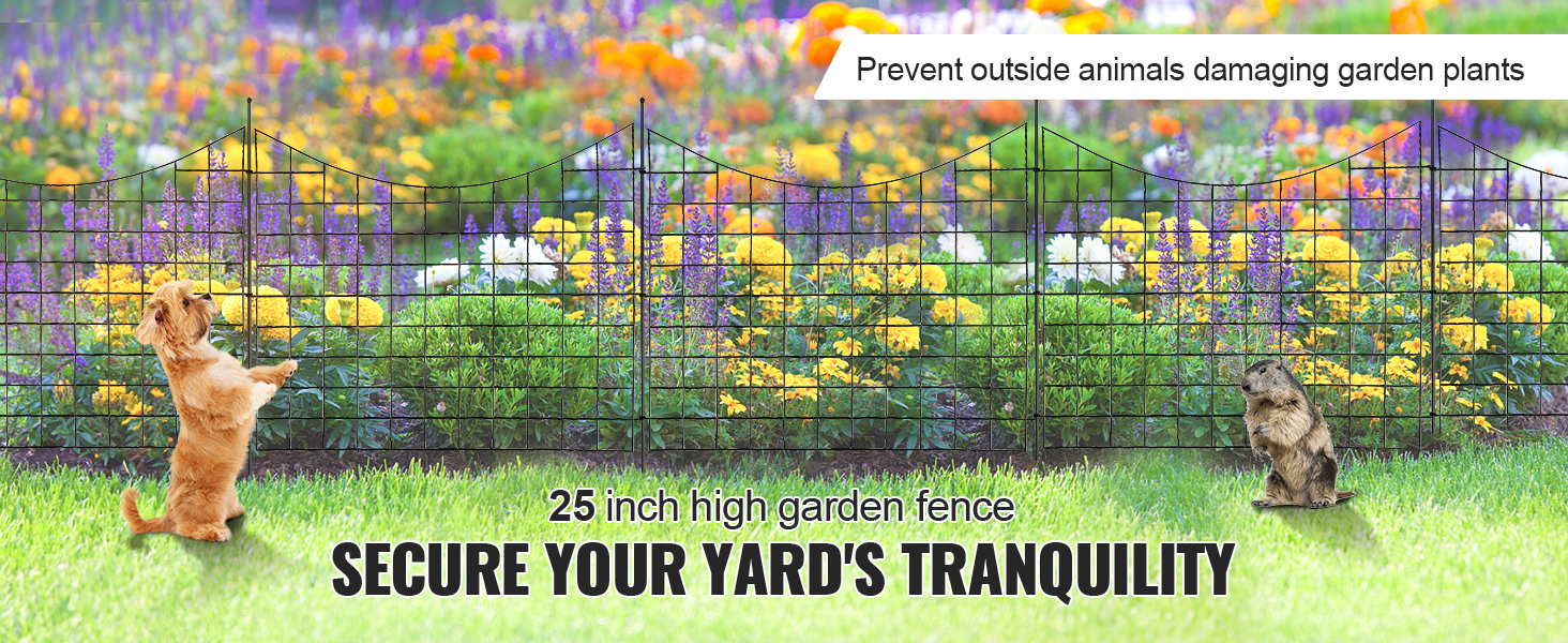At 36.6 inches tall, this garden fencing prevents children and pets from accidentally leaving the yard or approaching hazardous areas. The 2.5 inch spike spacing effectively keeps large pets and wildlife out, maintaining the cleanliness and tranquility.