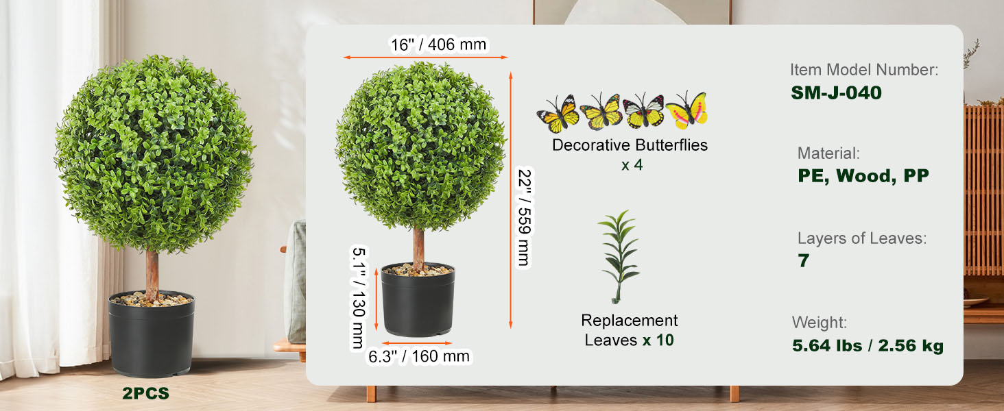 Enhance your decor with these artificial topiaries that come with additional butterflies. The presence of these butterflies allows for endless creativity in decoration. Arrange them in various compositions and arrangements to suit different events, seasons, or personal preferences. Let your imagination run wild and create a unique and captivating display.