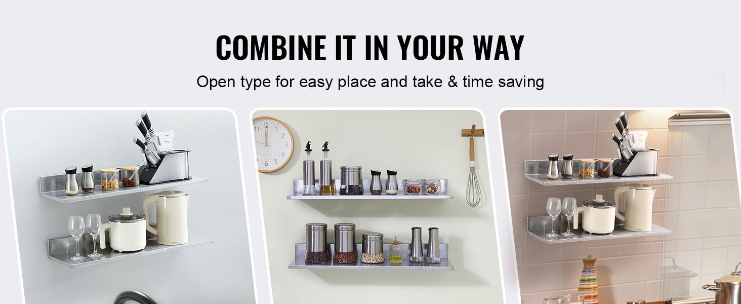 Vielseitig einsetzbar: Durch das offene Design sind Zutaten und Vorräte immer griffbereit. Zusätzlich kann dieses kommerzielle Wandregal in der Küche, im Schlafzimmer, in der Garage, in der Waschküche und in vielen anderen Bereichen verwendet werden. Komfort zum Greifen nah.