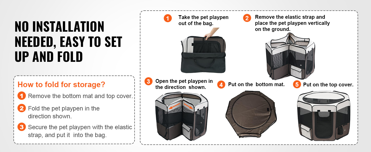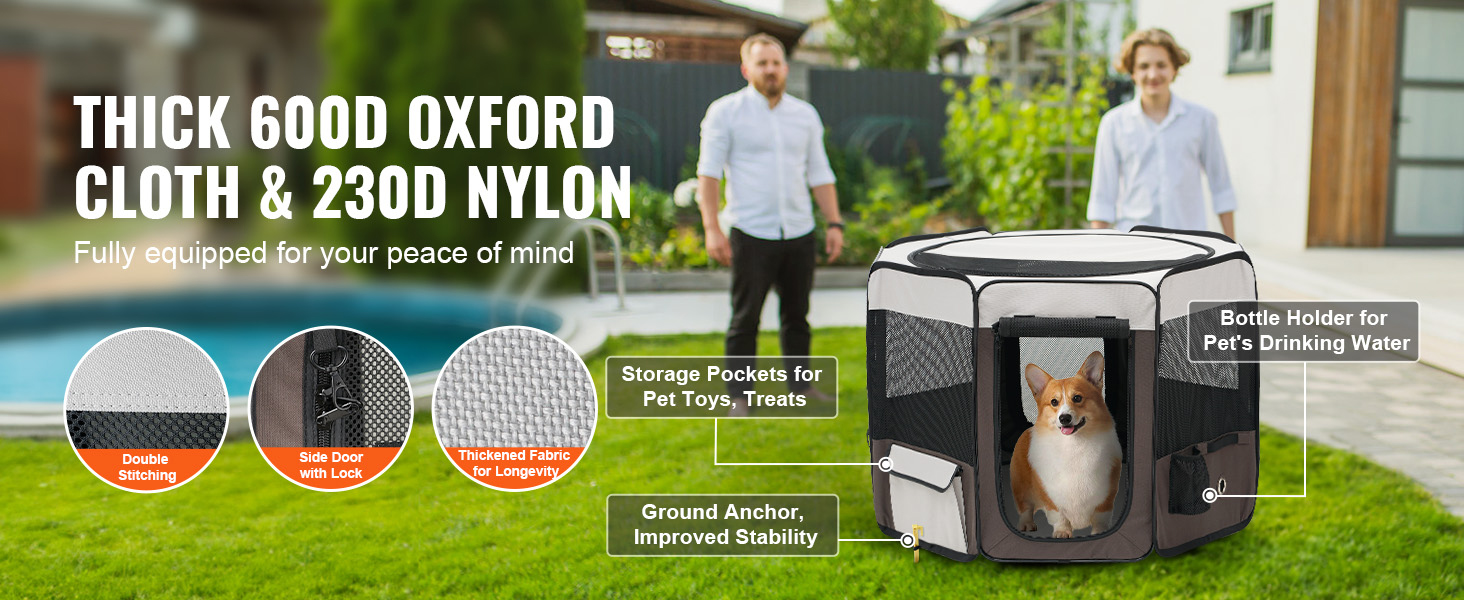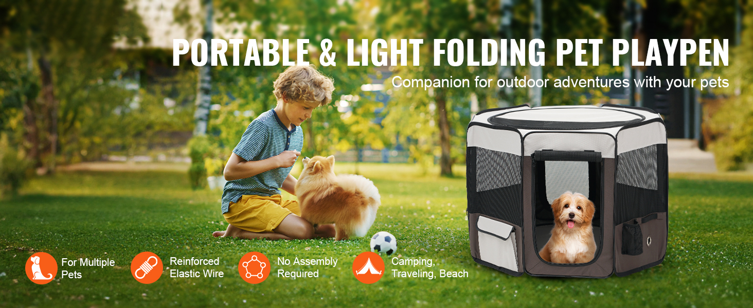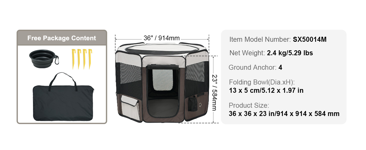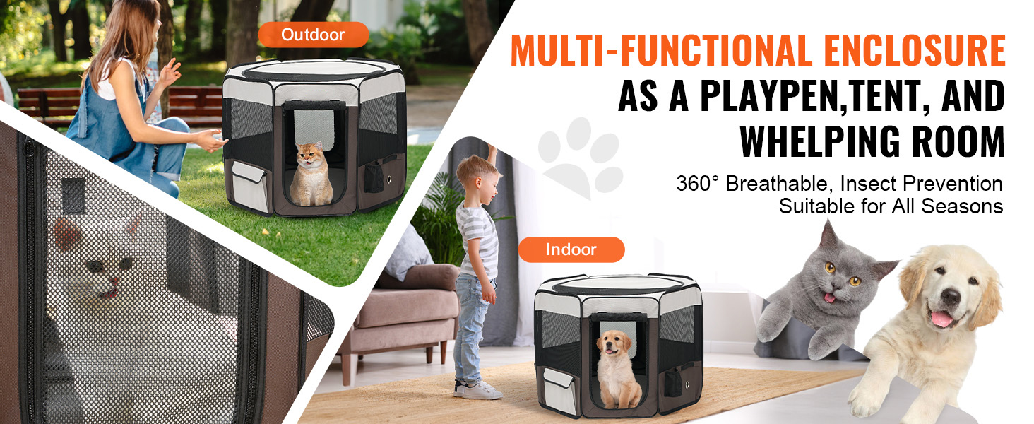 The pet playpen is made of 8 mesh panels, ensuring good ventilation and easy monitoring of your pets. The fence has multiple uses, such as a pet delivery room, outdoor tent, or pet isolation area. The light crate offers a spacious interior size, providing your pets with more play space!