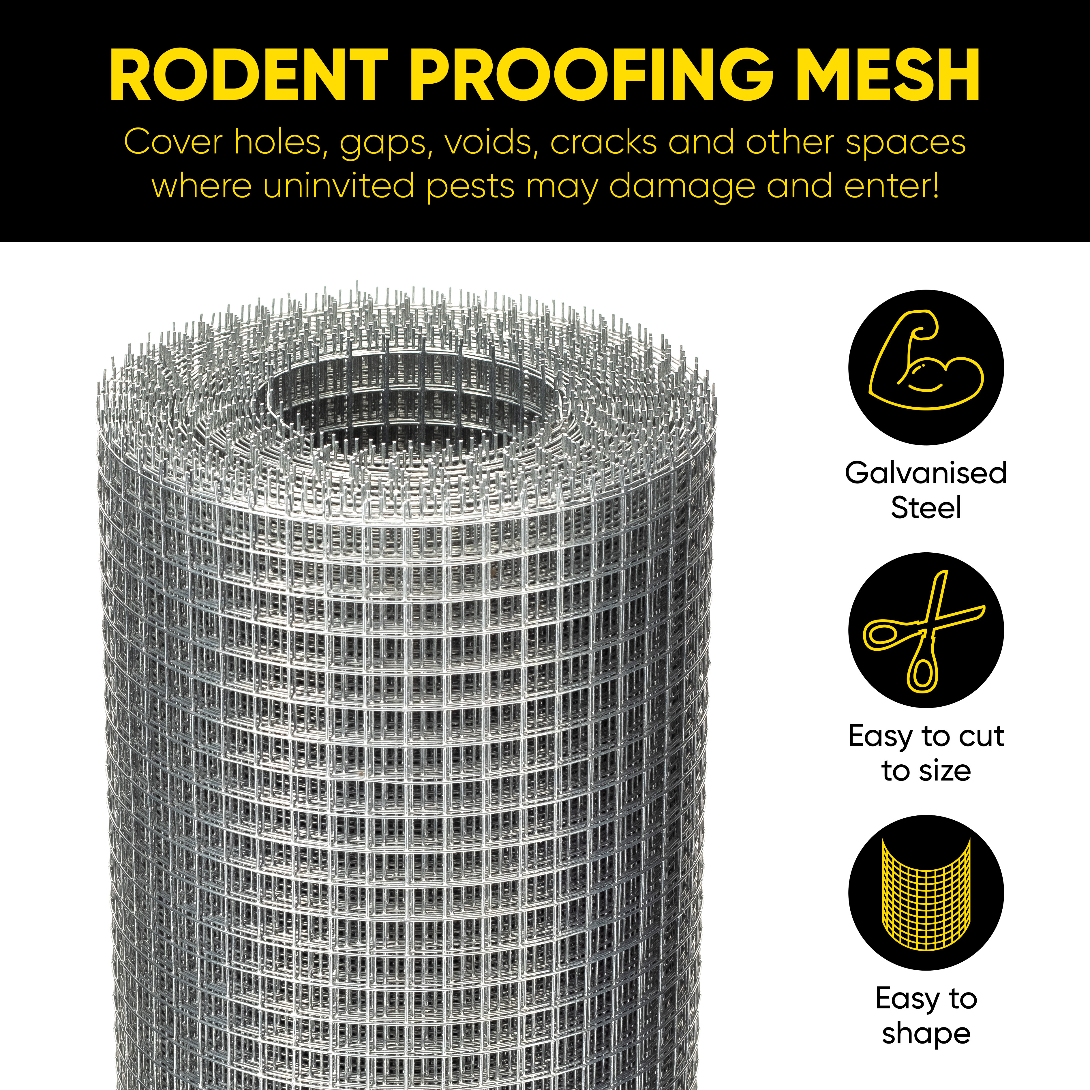 EASY TO HANDLE: The fine mesh can be cut to any size using ordinary tin snips and is very easy to shape so you can install it on a flat surface, curved surface or an uneven surface, wherever you have an access point for rodents this mesh will ensure they can no longer enter the building.
