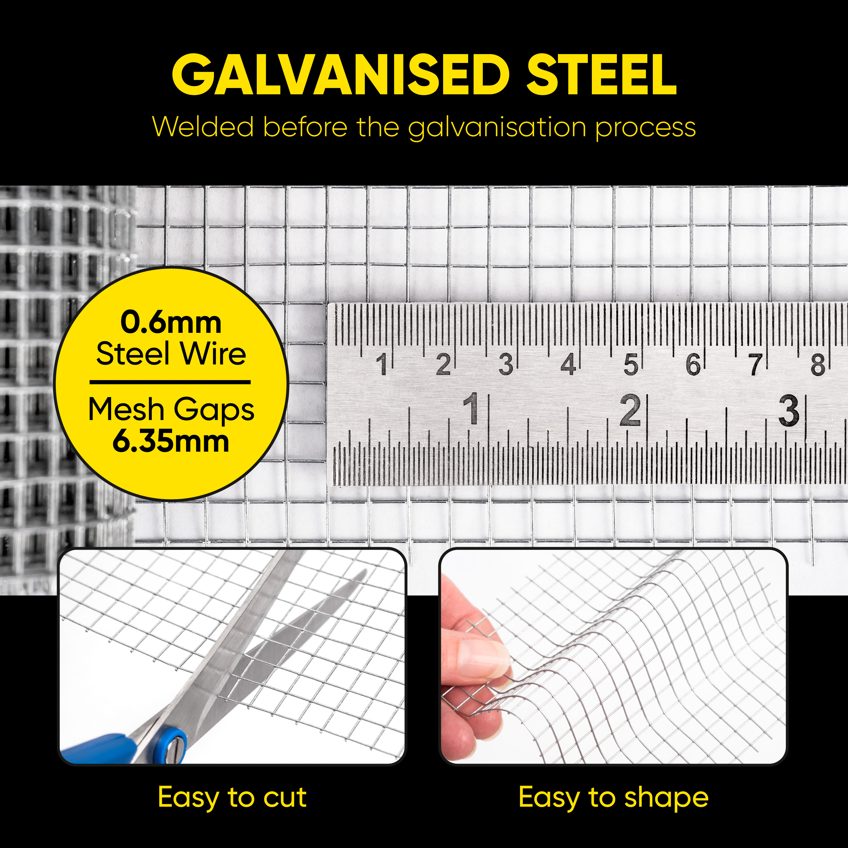 PREMIUM QUALITY: We use premium pure steel (not an alloy) that’s galvanised, this ensures that our steel is tough as bricks and will not rust or corrode unlike other low quality meshes. Our pure steel mesh is laser welded and not woven so rodents cannot squeeze through gaps and will guaranteed keep rodents out. Comes in 3 different size: 6 metres by 75mm / 6 metres by 100mm / 6 metres by 200mm, select the desired size based on the size of the hole or gap you're trying to secure.