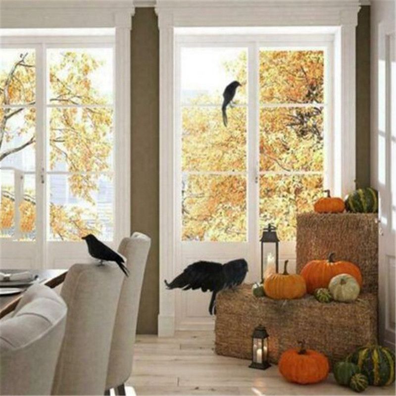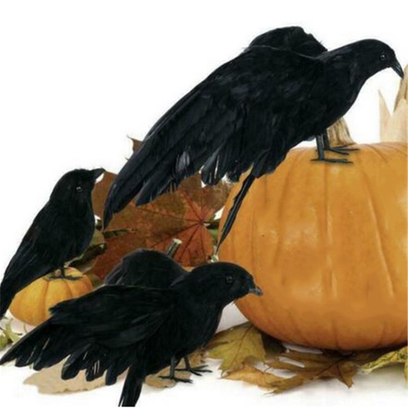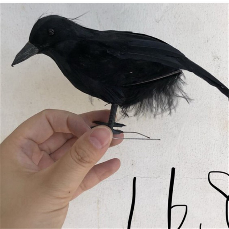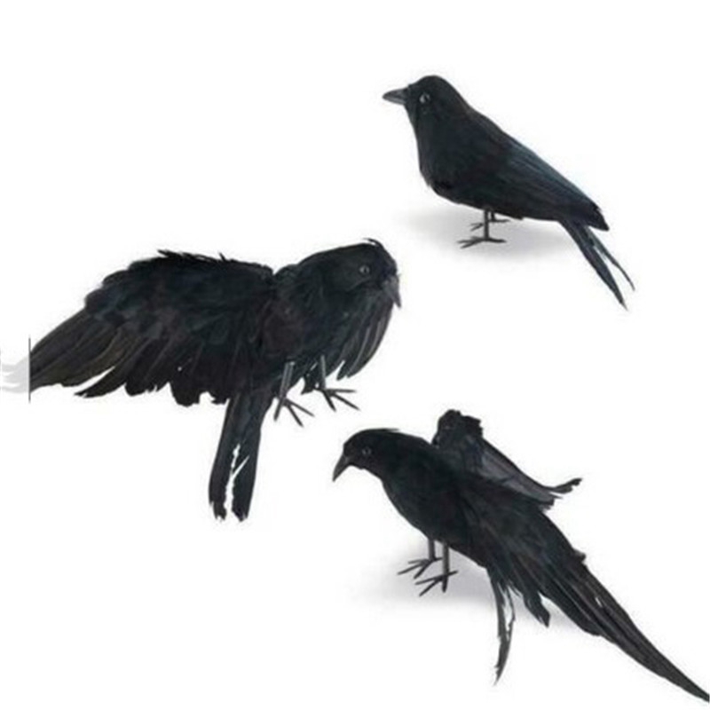 Halloween Stuffed Feather Crow Bird Black Ravens Fancy Dress Prop Home Decor