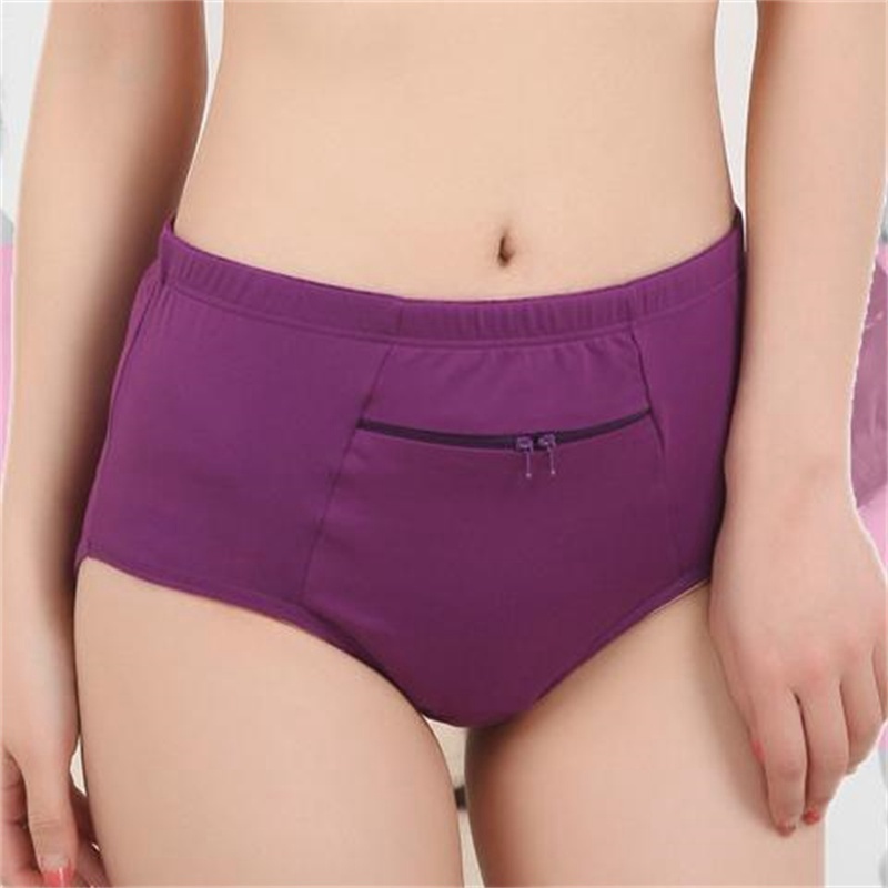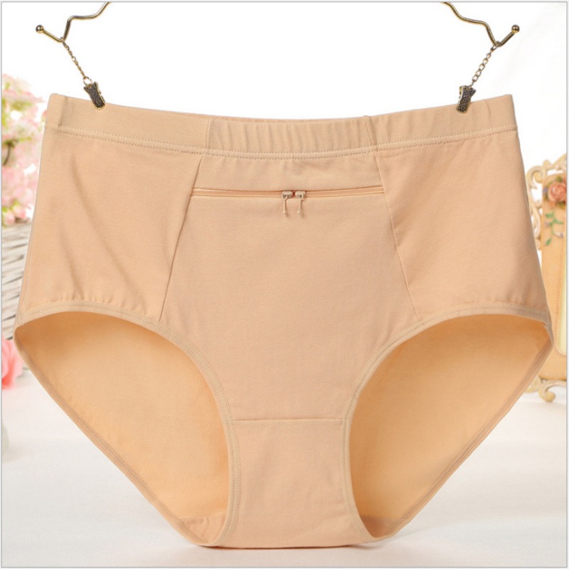 Women Panties with Zipper Big Size Female Cotton Underwear with Pocket High Quality Novel Breathable Ladies Briefs