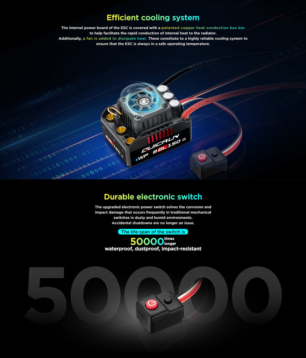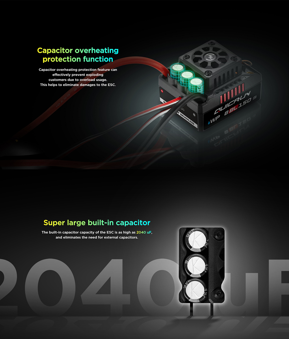 2. Strong resistant current capability and excellent heat dissipation. Multiple protection make the ESC more reliable.