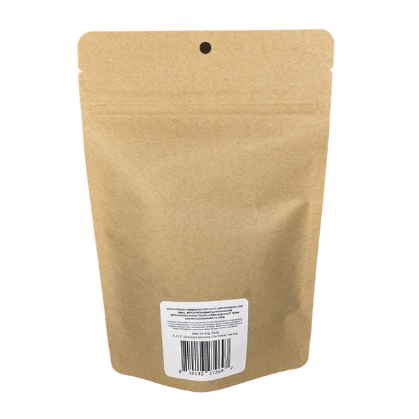 I have been told a story by a family member that my grandparents would visit them every year and pick elderberries from the bush in the yard. They used the elderberries then in the winter months. When the family member moved my grandparents no longer had elderberries. That winter my grandmother passed away. This is one of the many reasons we have chosen to produce products that help with keeping people healthy. We have here a Tea that is packed full of immune Supporting herbs and berries to help you live a healthier and happier life. In honor of Grandmother we have this Tea. and yes, She would love the name of the Tea. G.I.L.F. (Granny's Immune Life Force) Herbal Loose Leaf Tea is a flavorful and invigorating blend of organic raspberry leaf, organic nettle leaf, organic lemon balm, organic elderberries, organic echinacea purpurea herb and root, organic elder flower, organic rosehips, organic Oregon grape root, organic lemons, organic lemon verbena, and organic ginger root. It has a tart and fruity flavor with a hint of spice from the ginger. The nettle leaf adds a slightly earthy flavor, while the lemon balm and elderberries add a touch of sweetness. This tea is not only delicious, but it also has a number of health benefits. Raspberry leaf is known for its anti-inflammatory and antioxidant properties. It has also been shown to help regulate hormones and ease menstrual cramps. Nettle leaf is a good source of vitamins, minerals, and antioxidants. It is also known for its anti-inflammatory and diuretic properties. Lemon balm is known for its calming and relaxing properties. Elderberries are a good source of vitamin C and antioxidants. They are also known for their antiviral properties. Echinacea is known for its immune-boosting properties. Elder flower is a good source of antioxidants and has anti-inflammatory and antiviral properties. Rosehips are a good source of vitamin C and antioxidants. Oregon grape root is known for its antibacterial and antifungal properties. Lemons are a good source of vitamin C and antioxidants. Lemon verbena is known for its digestive and calming properties. Ginger is known for its anti-inflammatory and digestive properties. G.I.L.F. (Granny's Immune Life Force) Herbal Loose Leaf Tea is the perfect tea to enjoy when you need a boost of immunity or when you are feeling under the weather. It is also a good choice for people who are looking for a tea with anti-inflammatory and antioxidant properties. Here are some specific health benefits of G.I.L.F. (Granny's Immune Life Force) Herbal Loose Leaf Tea: Boosts the immune system: Raspberry leaf, elderberries, echinacea, elder flower, and rosehips are all known for their immune-boosting properties. Reduces inflammation: Raspberry leaf, nettle leaf, elder flower, and ginger all have anti-inflammatory properties. Protects against infection: Elderberries, echinacea, Oregon grape root, and ginger all have antiviral and antibacterial properties. Improves digestion: Nettle leaf, lemon verbena, and ginger are all known to improve digestion. Soothes the stomach: Ginger is known to soothe the stomach and relieve nausea. Protects against cancer: The antioxidants in raspberry leaf, nettle leaf, elderberries, echinacea, elder flower, rosehips, Oregon grape root, lemons, lemon verbena, and ginger can help to protect the body from cancer. G.I.L.F. (Granny's Immune Life Force) Herbal Loose Leaf Tea is a delicious and healthy way to enjoy the benefits of raspberry leaf, nettle leaf, lemon balm, elderberries, echinacea purpurea herb and root, elder flower, rosehips, Oregon grape root, lemons, lemon verbena, and ginger root. Try a cup today and experience the difference! Ingredients: Organic raspberry leaf, organic nettle leaf, organic lemon balm, organic elderberries, organic echinacea purpurea herb and root, organic elder flower, organic rosehips, organic Oregon grape root, organic lemons, organic lemon verbena, organic ginger root. Type: Herbal tea Item Form: Loose leaf Caffeine Content: Caffeine free Scientific name: n/a Other popular names: n/a Brand: Witchy Pooh's Exotic Teas and Herbs Manufacture: Witchy Pooh's Exotic Teas and Herbs Packaging: Kraft paper stand up, zipper closure, heat sealed with hanging hole, and viewing window. Sizes: 1oz Pouch (28g) Dimensions: (5 1/8"x3 1/8"x 8 1/8") Also available by case.