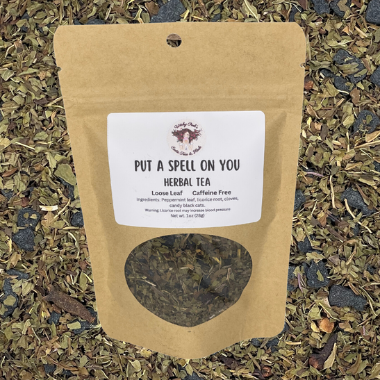 Put a Spell on You Herbal Loose Leaf Tea is a delicious and healthy way to enjoy the benefits of peppermint leaf, licorice root, cloves, and candy black kitty cats. Try a cup today and experience the magic!