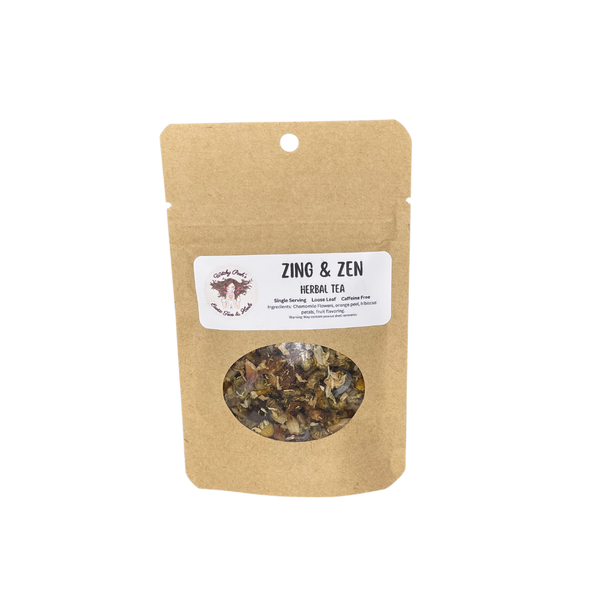Experience the perfect balance of zing and zen with our Zing & Zen Herbal Loose Leaf Tea! This unique blend of chamomile flowers, orange peel, hibiscus petals, and fruit flavoring is sure to tantalize your taste buds and soothe your soul.