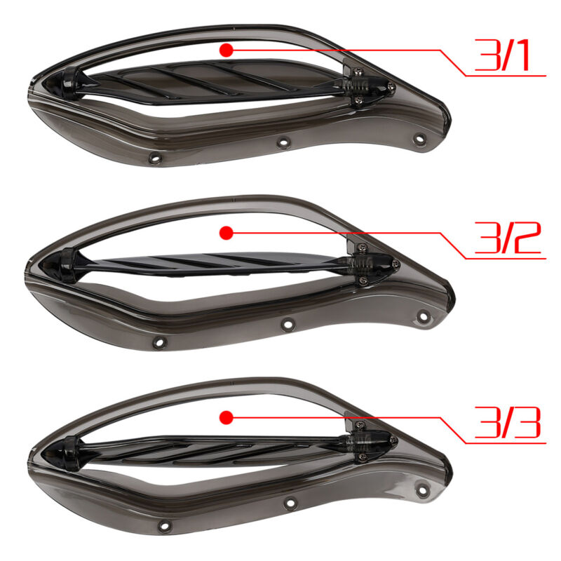 Description: Help keep your cool on hot summer rides. The smoked adjustable air deflectors feature a spring-loaded detent system that locks in four different positions. Close the vent to direct airflow around the fairing or open the vent to maximize airflow on hot days. Easy to install ,the complete kit includes left and right deflector and all necessary mounting hardware. Specification: Condition: TrichTu Mount 100% Brand New Material: Polycarbonate Color: Black (available in black/ smoke/ clear) New design: Adjustable,3 different Levels to adjust for variable airflow Package includes: 1 Pair of air deflector with mouinting hardware Fitment: Fits For Electra Glide, Street Glide and Trike '96-'13 models. Compatibility on Aliexpress is for reference only. Please check below list. Fits For Electra Glide, Street Glide and Trike '96-'13 models. Compatibility on Aliexpress is for reference only. Please check below list. Fits For CVO Electra Glide FLHTCSE 2004 Fits For CVO Electra Glide FLHTCSE2 2005 Fits For CVO Street Glide FLHXSE 2010 Fits For CVO Street Glide FLHXSE2 2011 Fits For CVO Street Glide FLHXSE3 2012 Fits For CVO Ultra Classic Electra Glide FLHTCUSE 2006 Fits For CVO Ultra Classic Electra Glide FLHTCUSE2 2007 Fits For CVO Ultra Classic Electra Glide FLHTCUSE3 2008 Fits For CVO Ultra Classic Electra Glide FLHTCUSE4 2009 Fits For CVO Ultra Classic FLHTCUSE5 2010 Fits For Electra Glide Classic EFI FLHTCI 1996-2006 Fits For Electra Glide Classic FLHTC 1996-2005,2007-2013 Fits For Electra Glide Standard EFI FLHTI 2003-2006 Fits For Electra Glide Standard FLHT 1996-2009 Fits For Electra Glide Ultra Limited FLHTK 2010-2013 Fits For Street Glide EFI FLHXI 2006 Fits For Street Glide FLHX 2006-2013 Fits For Street Glide Trike FLHXXX 2010-2011 Fits For Tri Glide Ultra Classic FLHTCUTG 2009-2013 Fits For Ultra Classic Electra Glide EFI FLHTCUI 1996-2006 Fits For Ultra Classic Electra Glide FLHTCU 1996-1997, 2007-2013
