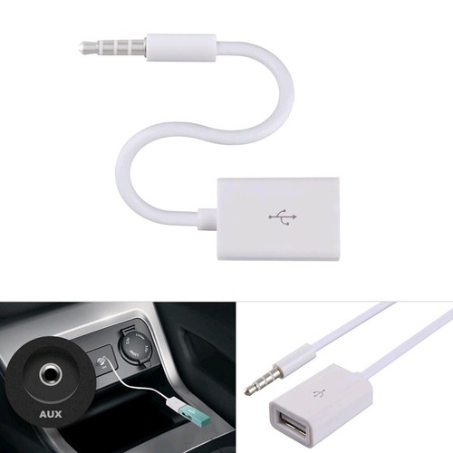 Car Parts White 3.5mm Male AUX Audio Plug Jack To USB 2.0 Converter Cord Cable