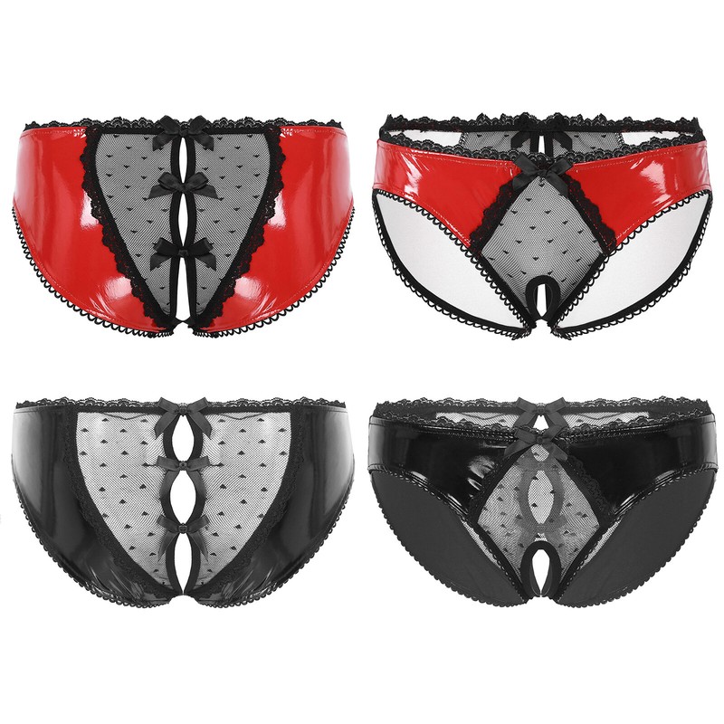 Men Sissy Satin Underwear Thong Lace Patchwork Panties G-string Briefs T-back.