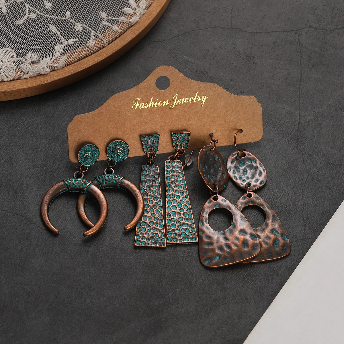 3Pcs/lot Boho Ethnic Dangle Earrings Set for Women Vintage Gypsy Alloy Drop Earrings Sets Pendientes Earring Pendant Jewelry