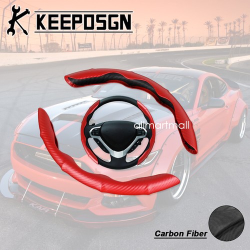 For Ford Mustang Fusion Focus 15'' Carbon Fiber Red Steering Wheel Cover Leather