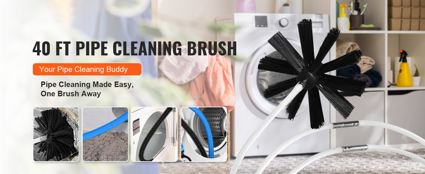 40 ft length for versatile home pipe cleaning, with high-density bristles for thorough debris removal.