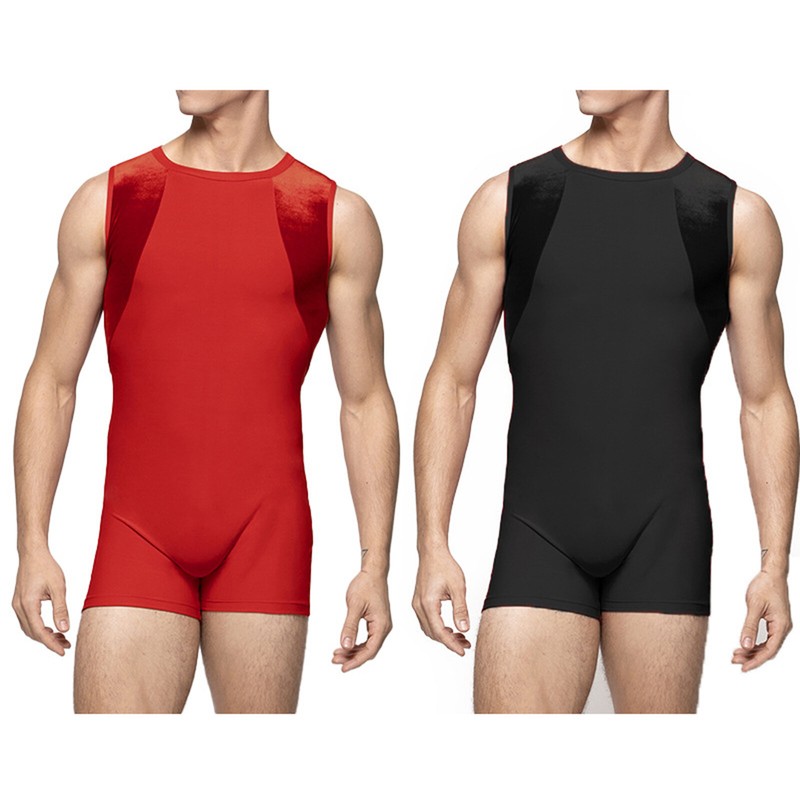 Round neck, sleeveless, color block patchwork leotard jumpsuit with back zipper is easy to wear.