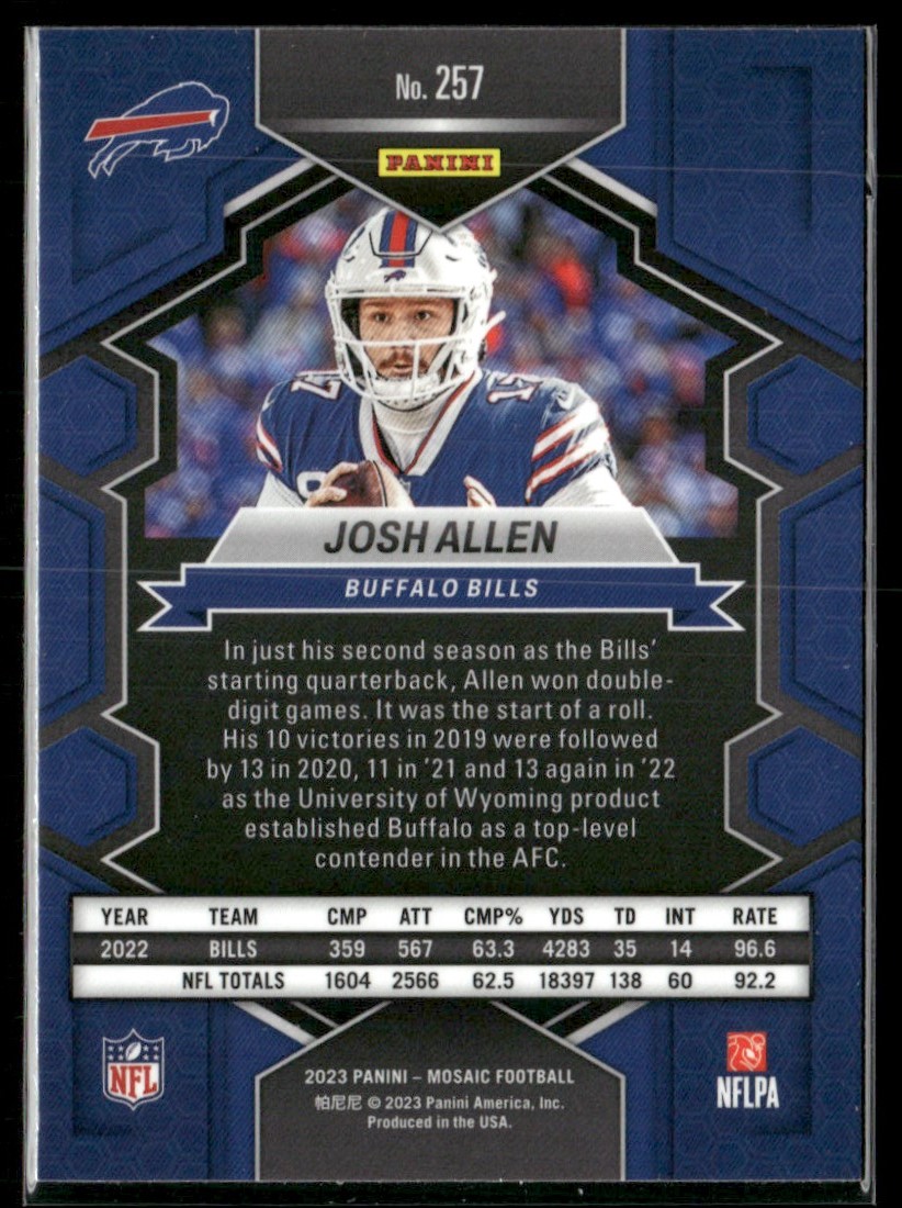 | 2023 Panini Mosaic BASE National Pride Josh Allen Buffalo Bills #257 | ||||||||||||||||||