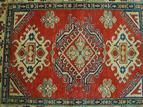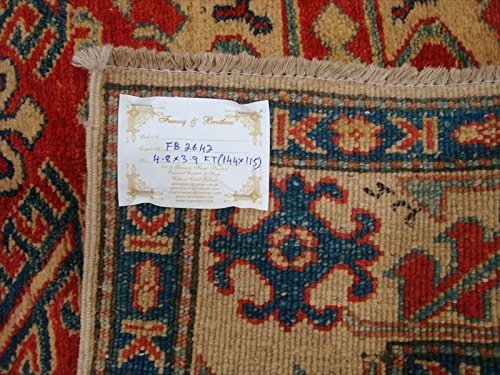 Kazak Caucasion Geometric Mahal Veg dyed Hand Knotted Rug Carpet (4.8 x 3.9)'. For the perfect combination of unique, beautiful style and high-quality durability, the attention to detail on these beautiful contemporary rugs is noticed as soon as you lay eyes on the carpet. Kazak is a modern shape of old Caucasian rugs which strictly adheres to traditional design elements of the Caucasus. It has elements such as the stepped hooked polygons, geometrical medallions and rosettes, presented in more stylized manner and with a new dimension. Natural dyes produce soft luminous shades and abrashes causing a beautiful sheen. Handspun woolen yarn is normally used in the variety of vibrant warm colors. Kazaks rugs in our collection are all fine quality pieces from Afghanistan made with Ghazni handspun wool and natural dyes It Takes at least 6 months to make a master pcs like this. Give your home an elegant touch with this amazing rug carpet. Great for any decor, adds texture to the floor and complements any decor. 100% Genuine Hand Knotted-Rug not hand tufted like other sellers.