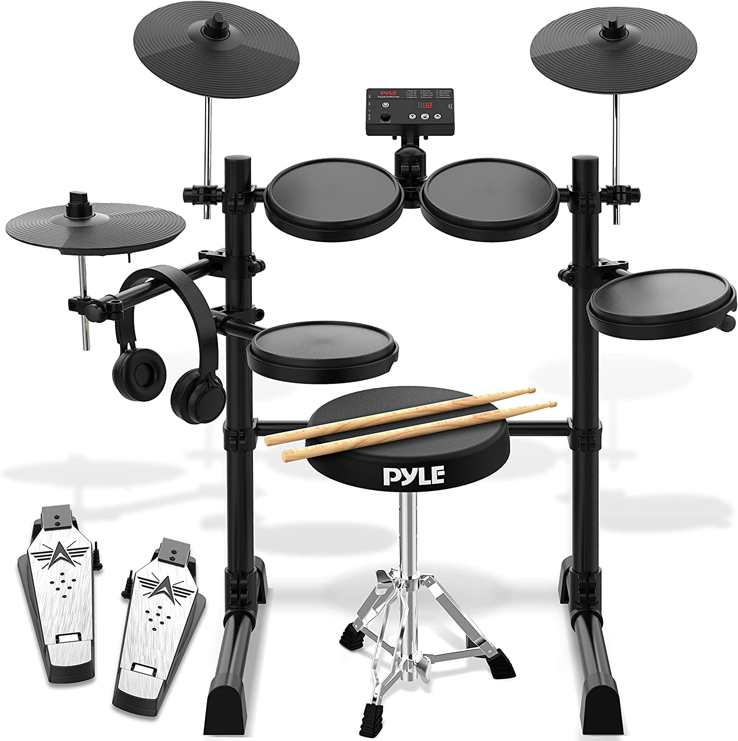 Pyle 8-Piece Electric Drum Set Professional Electronic Drumming Kit Machine w/ MIDI Support, Preloaded Sounds, Record Mode, Cymbals, Digital Foot Pedals, Sound Module, Drumsticks, Mac/PC Compatible