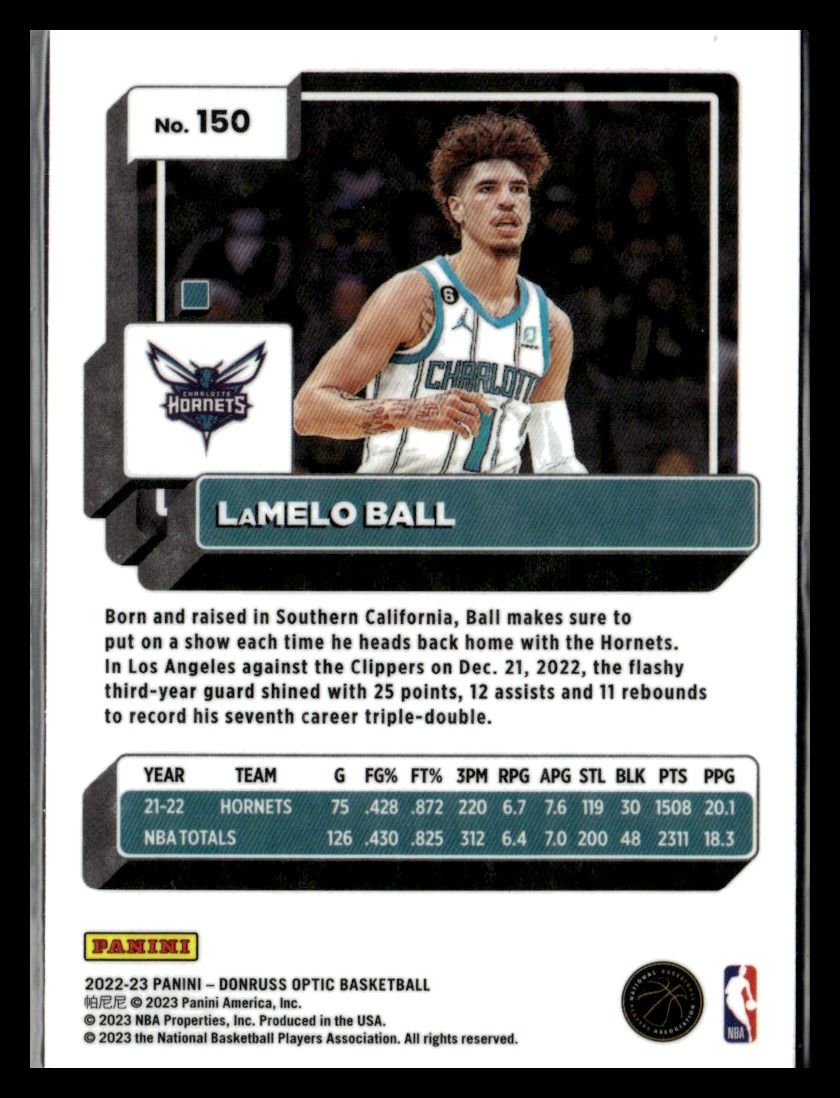 | 2022-23 Donruss Optic BASE LaMelo Ball Charlotte Hornets #150 | ||||||||||||||||||