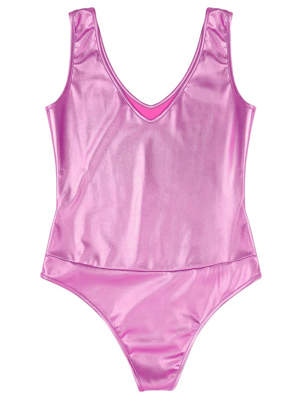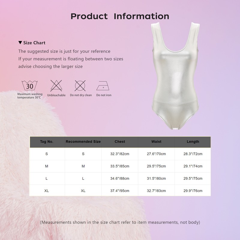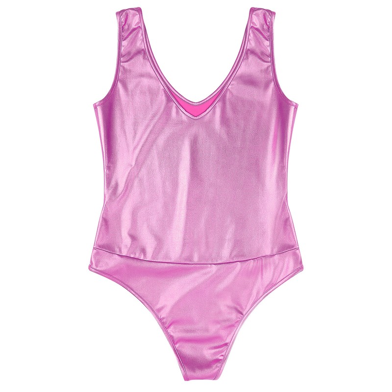 Allover with metallic shiny for a stylish look, makes you stand out and eye-catching. Bodycon bodysuit highlight your hourglass figure.
