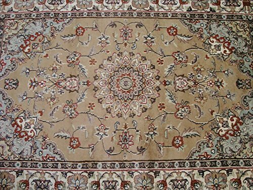 Exclusive Ivory Medallion Flowers Lovely Hand Knotted Area Rug Wool Silk Carpet (6 X 4)'. The rug to appear dull when viewed from one side, and shiny from the other side. Please view the picture at the bottom to see the bright side of the rug. This rug can help brighten up a room if you do not get much sunlight. Simply put the bright side facing the seating area and it will make the room appear surprisingly bright. Rectangle shape with excellent floral pattern. Ideal choice for the modern family room. Blended color schemes match well with all styles of furniture and art. Give your home an elegant touch with this amazing rug carpet. Great for any decor, adds texture to the floor and complements any decor. 100% Genuine Hand Knotted-Rug not hand tufted like other sellers.