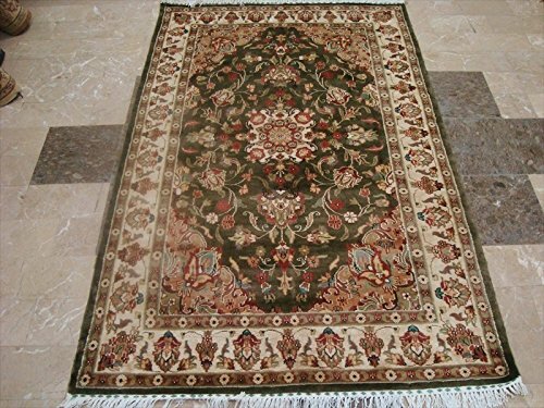 Exclusive Medallion Floral Green Hand Knotted Rectangle Area Rug (4 x 6)'. Add a classic look in your home with this rug. For the perfect combination of unique, beautiful style and high-quality durability, the attention to detail on these beautiful contemporary rugs is noticed as soon as you lay eyes on the carpet. The rug to appear dull when viewed from one side, and shiny from the other side. Please view the picture at the bottom to see the bright side of the rug. This rug can help brighten up a room if you do not get much sunlight. Simply put the bright side facing the seating area and it will make the room appear surprisingly bright. Blended color schemes match well with all styles of furniture and art. Give your home an elegant touch with this area rug. Great for any decor, adds texture to the floor and complements any decor. 100% Genuine Hand Knotted-Rug not hand tufted.