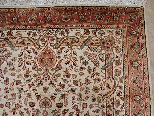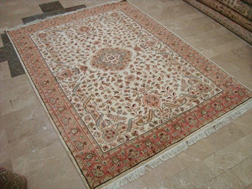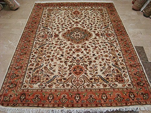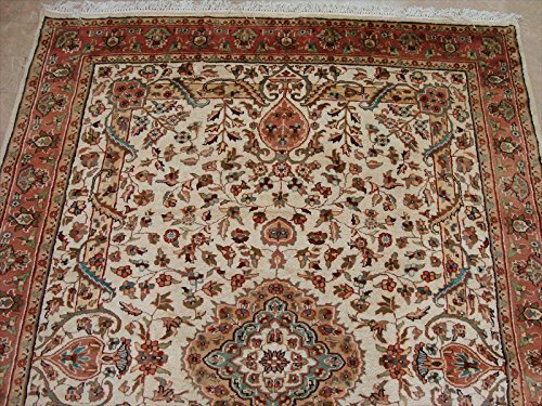 Wow Pestal Ivory Medallion Vaas Rectangle Area Rug Hand Knotted Wool Silk Carpet (8 x 6)'. The rug to appear dull when viewed from one side, and shiny from the other side. Please view the picture at the bottom to see the bright side of the rug. This rug can help brighten up a room if you do not get much sunlight. Simply put the bright side facing the seating area and it will make the room appear surprisingly bright. Gorgeous flower med design with Ivory and multi-color, sure to catch your attention. This rug is easily compatible with most home decor. Blended color schemes match well with all styles of furniture and art. Give your home an elegant touch with this area rug. Great for any decor, adds texture to the floor and complements any decor. 100% Genuine Hand Knotted-Rug not hand tufted.