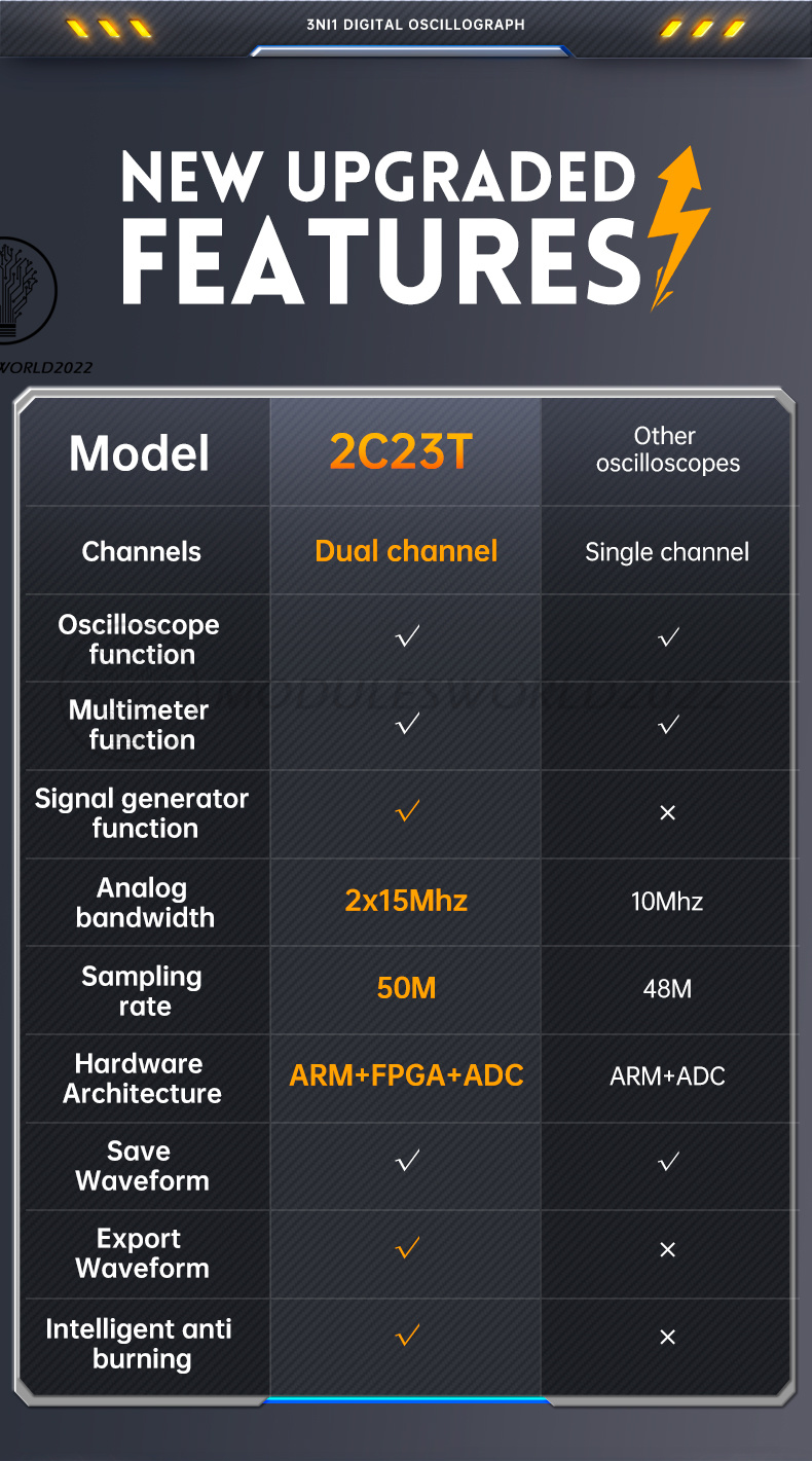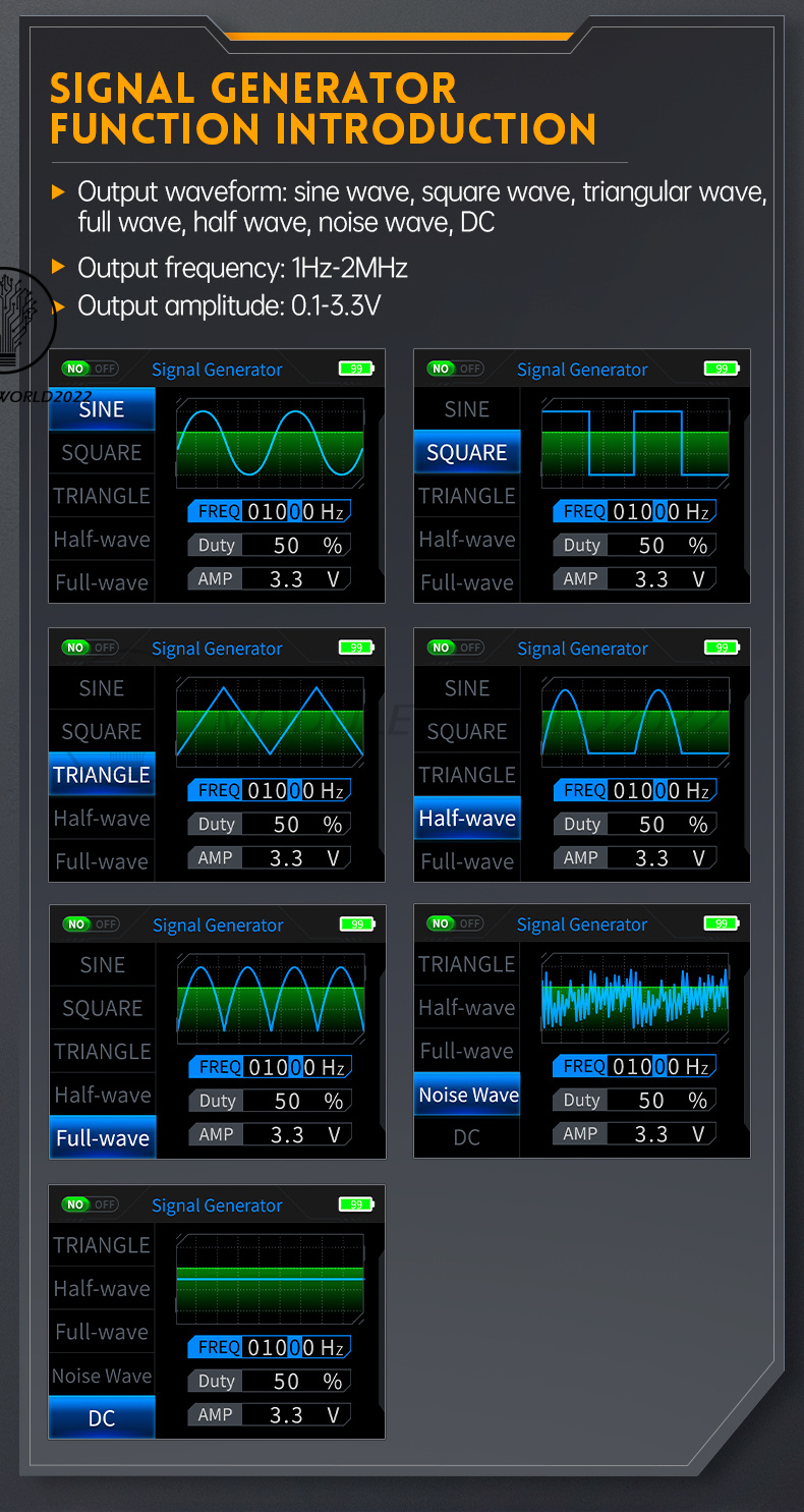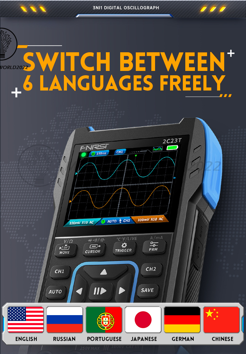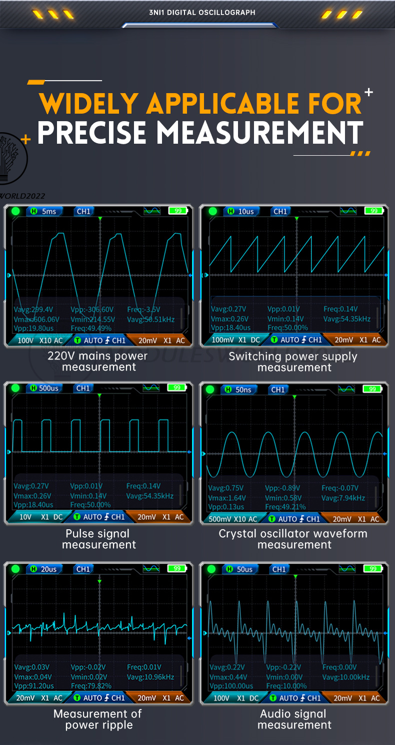 1. Dual-channel 3-in-1 digital oscilloscope: multimeter + oscilloscope + signal generator