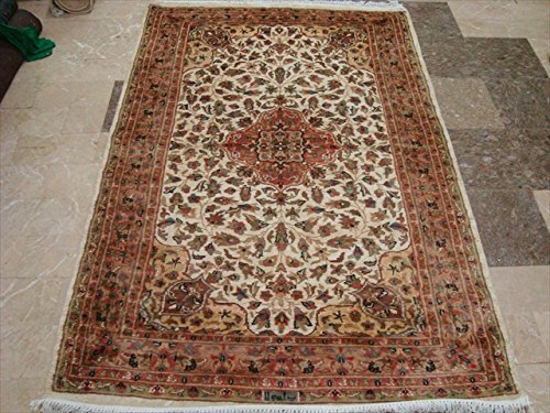 Live Ivory Medallion Flowers Rectangle Area Rug Hand Knotted Wool Silk Carpet (6 x 4)'. The rug to appear dull when viewed from one side, and shiny from the other side. Please view the picture at the bottom to see the bright side of the rug. This rug can help brighten up a room if you do not get much sunlight. Simply put the bright side facing the seating area and it will make the room appear surprisingly bright. Gorgeous flower med design with Ivory and multi-color, sure to catch your attention. This rug is easily compatible with most home decor. Blended color schemes match well with all styles of furniture and art. Give your home an elegant touch with this area rug. Great for any decor, adds texture to the floor and complements any decor. 100% Genuine Hand Knotted-Rug not hand tufted.