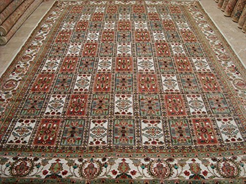 Bakhtiari Floral Blocks Rectangle Area Rug Hand Knotted Wool Silk Carpet (12.5 x 9.1)'. For the perfect combination of unique, beautiful style and high-quality durability, the attention to detail on these beautiful contemporary rugs is noticed as soon as you lay eyes on the carpet. The rug to appear dull when viewed from one side, and shiny from the other side. Please view the picture at the bottom to see the bright side of the rug. This rug can help brighten up a room if you do not get much sunlight. Simply put the bright side facing the seating area and it will make the room appear surprisingly bright. Rectangle shape with excellent medallion pattern. Ideal choice for the modern family room. Blended color schemes match well with all styles of furniture and art. Give your home an elegant touch with this amazing rug carpet. Great for any decor, adds texture to the floor and complements any decor. 100% Genuine Hand Knotted-Rug not hand tufted.