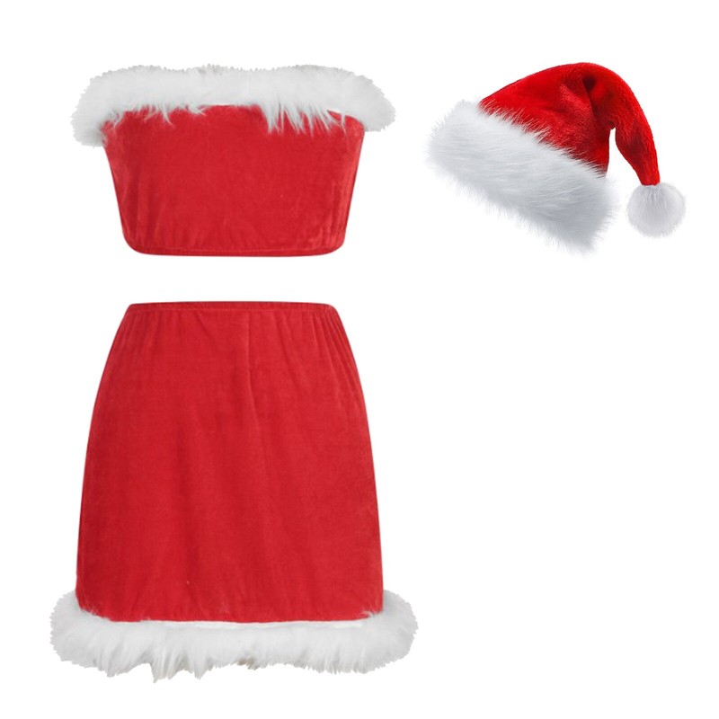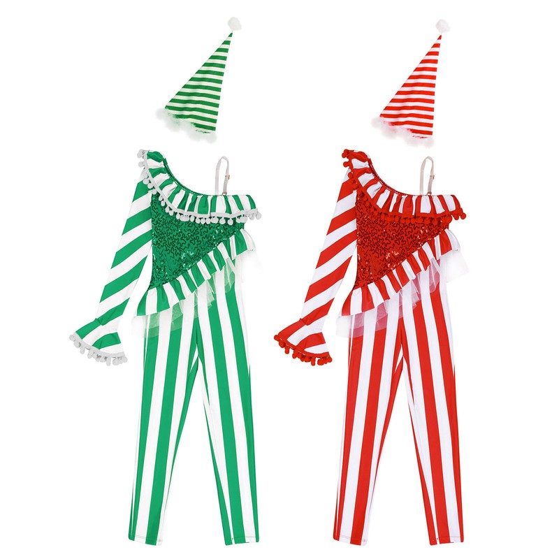 Petty red hat/Red and green striped hat, with small white ball at the top and white trim bottom.